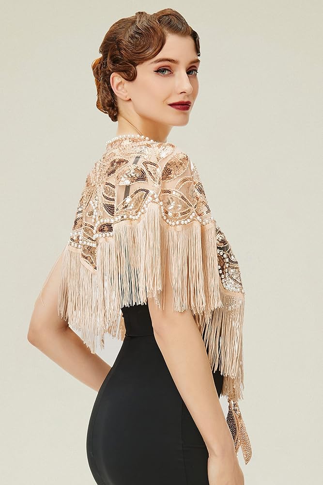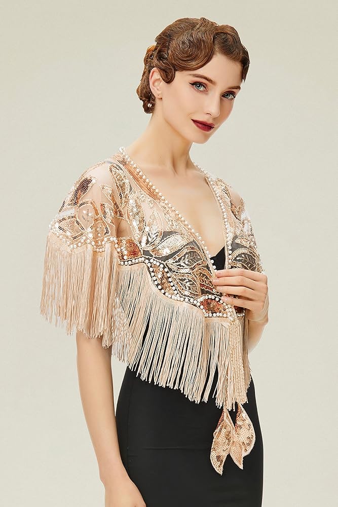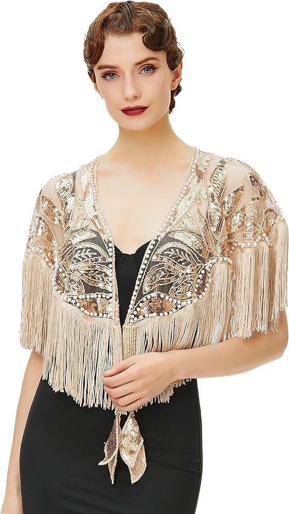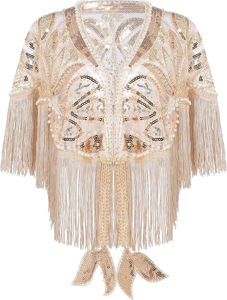BABEYOND شال مطرز بالترتر التفاف 1920s مساء شال كيب غاتسبي لفساتين السهرة وحفلات الزفاف
