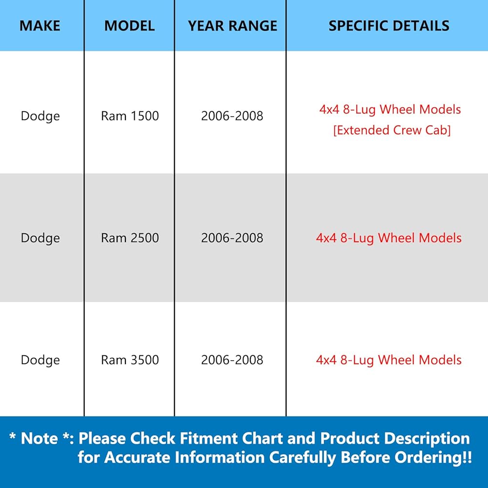 【ملاءمة السيارة】- استبدال مجموعة محور العجلة متوافق مع DODGE RAM 2500 2006-2008 (نماذج العجلات 4x4 8-Lug)