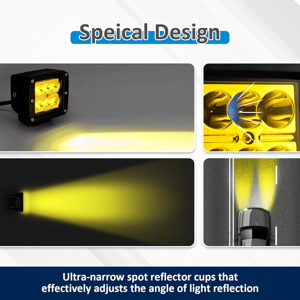 Excellent LED visibility: Have 6 high-performance 4W LED chips, 3360LM, yellow light, wider and more eye-catching illumination in rainy and foggy weather, better warning function