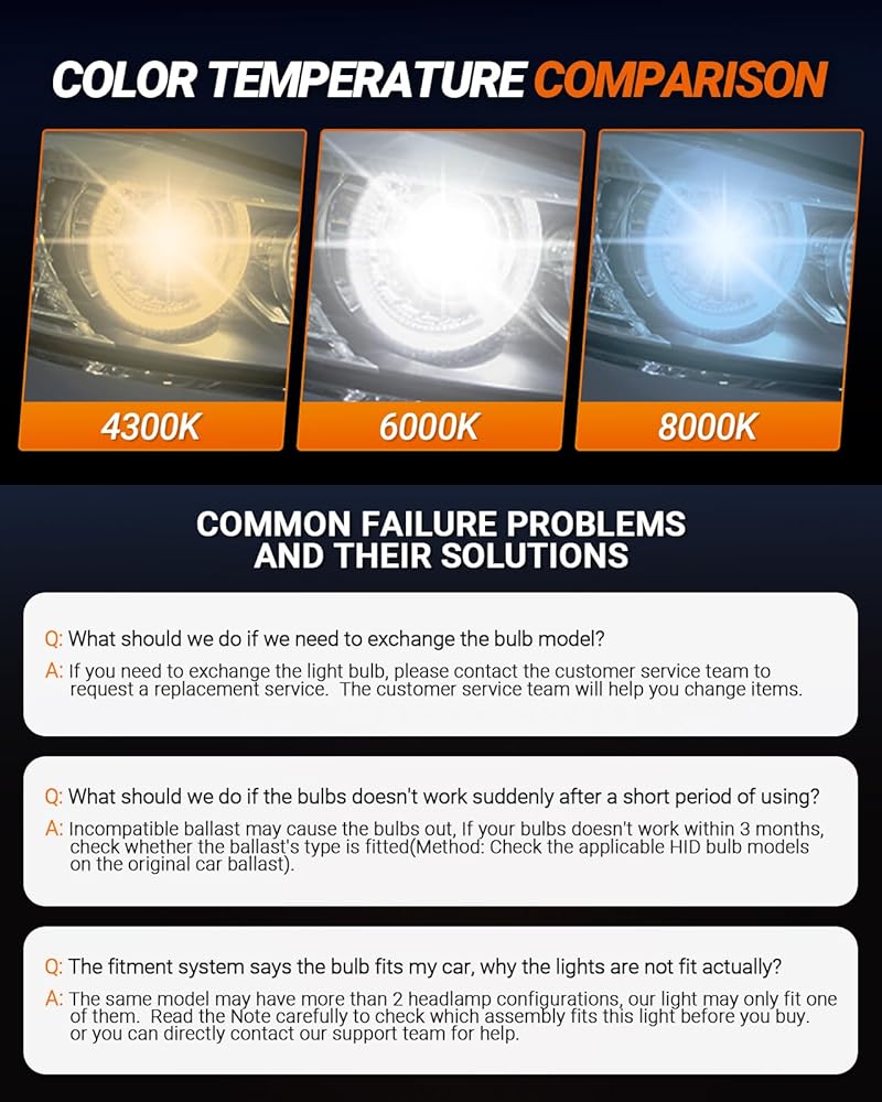 • 【 شعاع مثالي 】تم اختبار لمبة d4s hid 6000k عدة مرات لضمان الحصول على أشعة عالية ومنخفضة مثالية بدون بقع سوداء، لذلك يمكنك الاستمتاع برؤية محسنة لـ HID في بضع دقائق فقط وتقليل إجهاد العين عند القيادة ليلاً.
