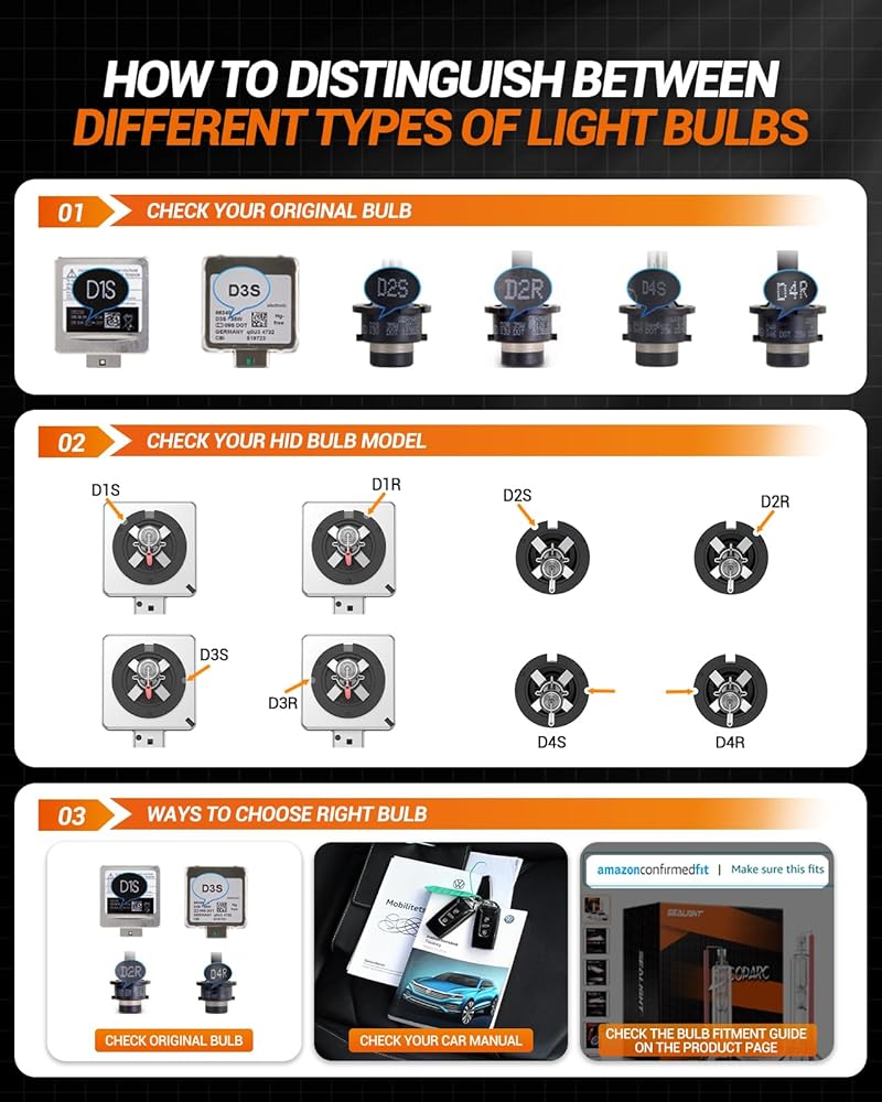 • 【 هام 】 مصابيح Sealight D4S HID تحل محل لمبة تجميع D4S HID فقط، ولا تناسب مجموعة الهالوجين / LED الخاصة بسيارتك، حتى النظام يقول "مناسب".