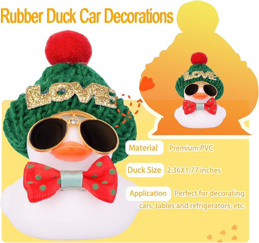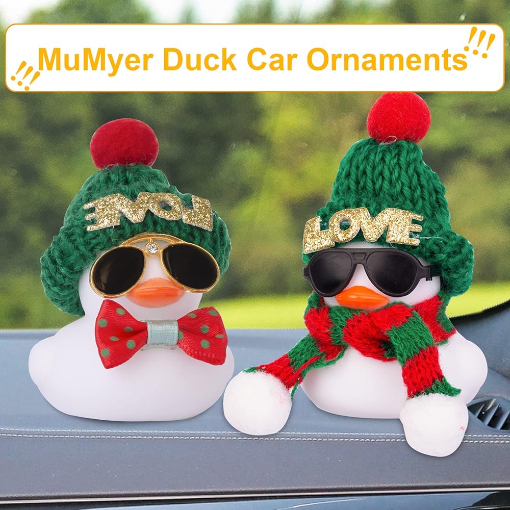 ☃️ بطة داش مرحة: تم تصميم بطة السيارة هذه بقبعة صغيرة ووشاح أو ربطة عنق ونظارات شمسية وأشرطة على الوجهين. إنها بطة جميلة تخفف من التعب البصري، والإجهاد، وتجلب لك ابتسامة حلوة.