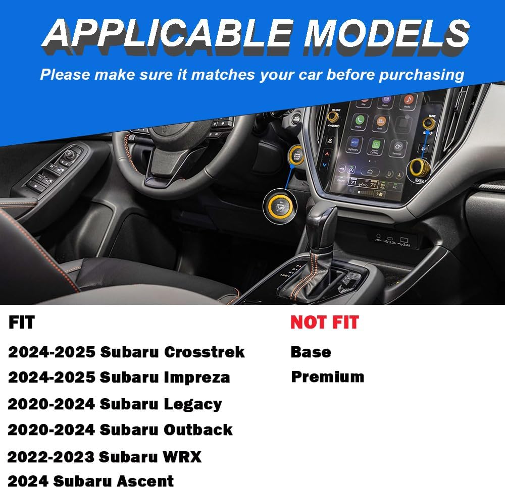 【FITMENT】3pcs/set(2*Volume Tune Knob+1*Start Stop Button Outer Ring)The Knob Ring Compatible with 2024 2025 Subaru Crosstrek & Impreza ,Fit for Legacy Outback 2020-2024 /WRX 2022-2023 / Ascent 2024.Please NOTE: Not for Base and Premium.Please make sure it matches your car before purchasing.