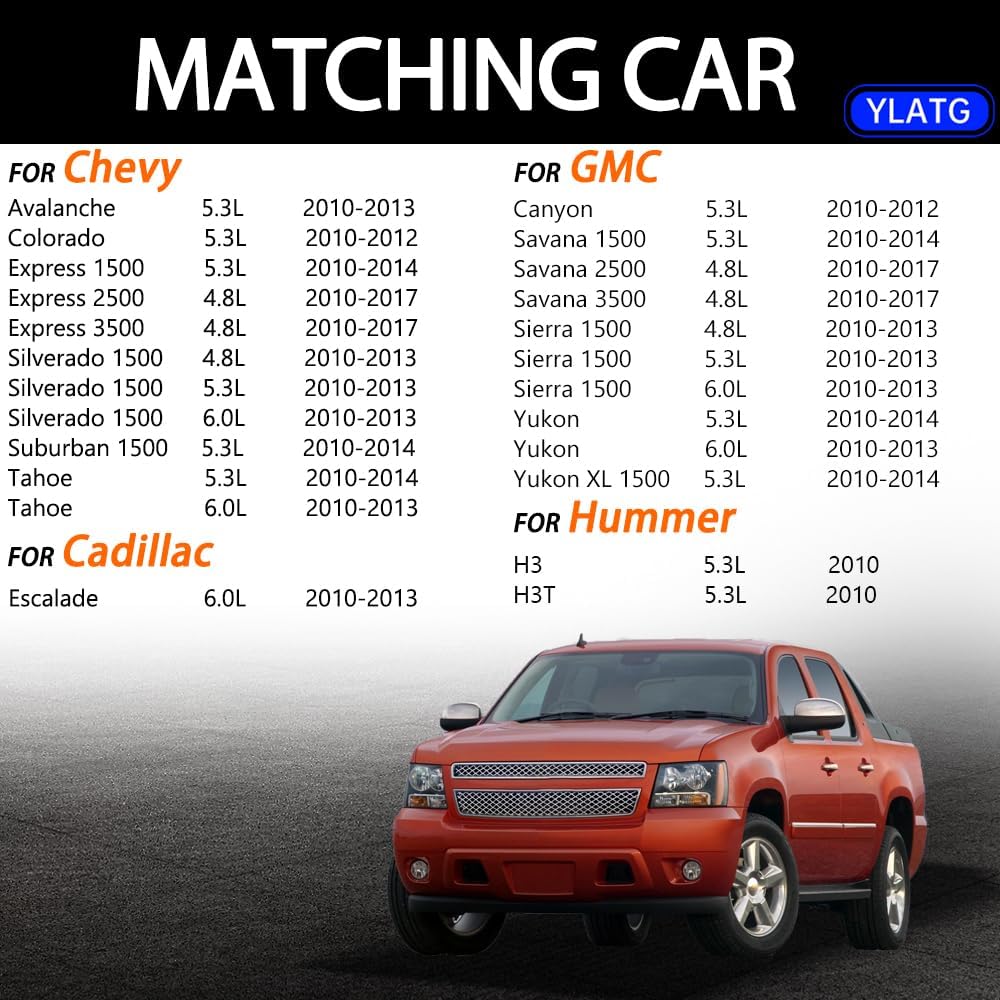 حاقن الوقود YLATG حاقن لسيارة تشيفي سيلفرادو 1500 تاهو إكسبريس 1500/2500/3500 سوبربان أفالانش، لكاديلاك إسكاليد، لسيارة جي إم سي يوكون سييرا 1500 سافانا 1500/2500/3500 5.3L 4.8L 12613411 (8 قطع)