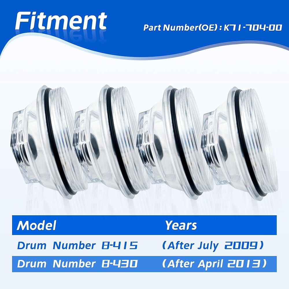 These oil caps are a direct replacement for oil caps are commonly found on 8-415 Oil Bath Drums Made After July 2009 and 8-430 drums made After April 2009