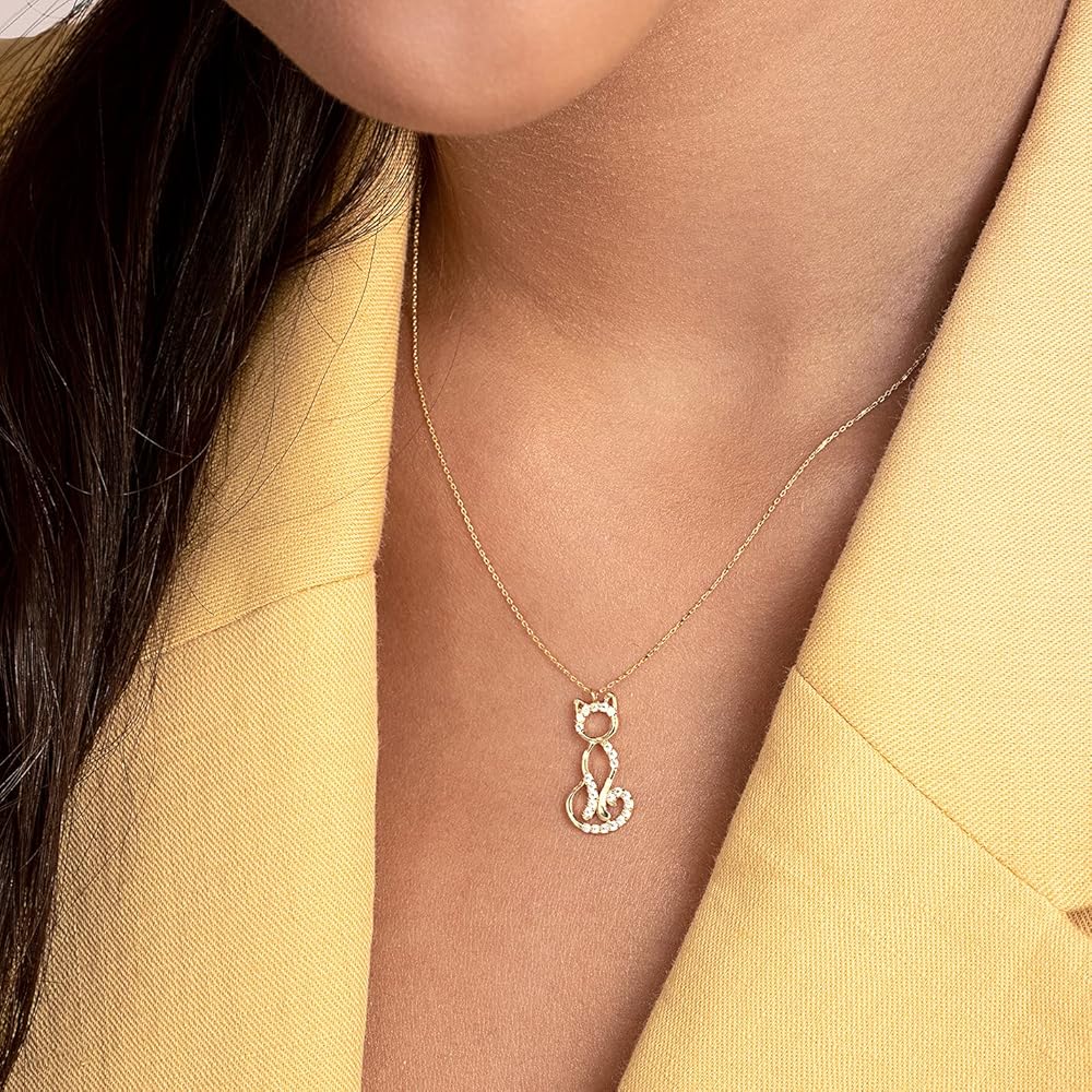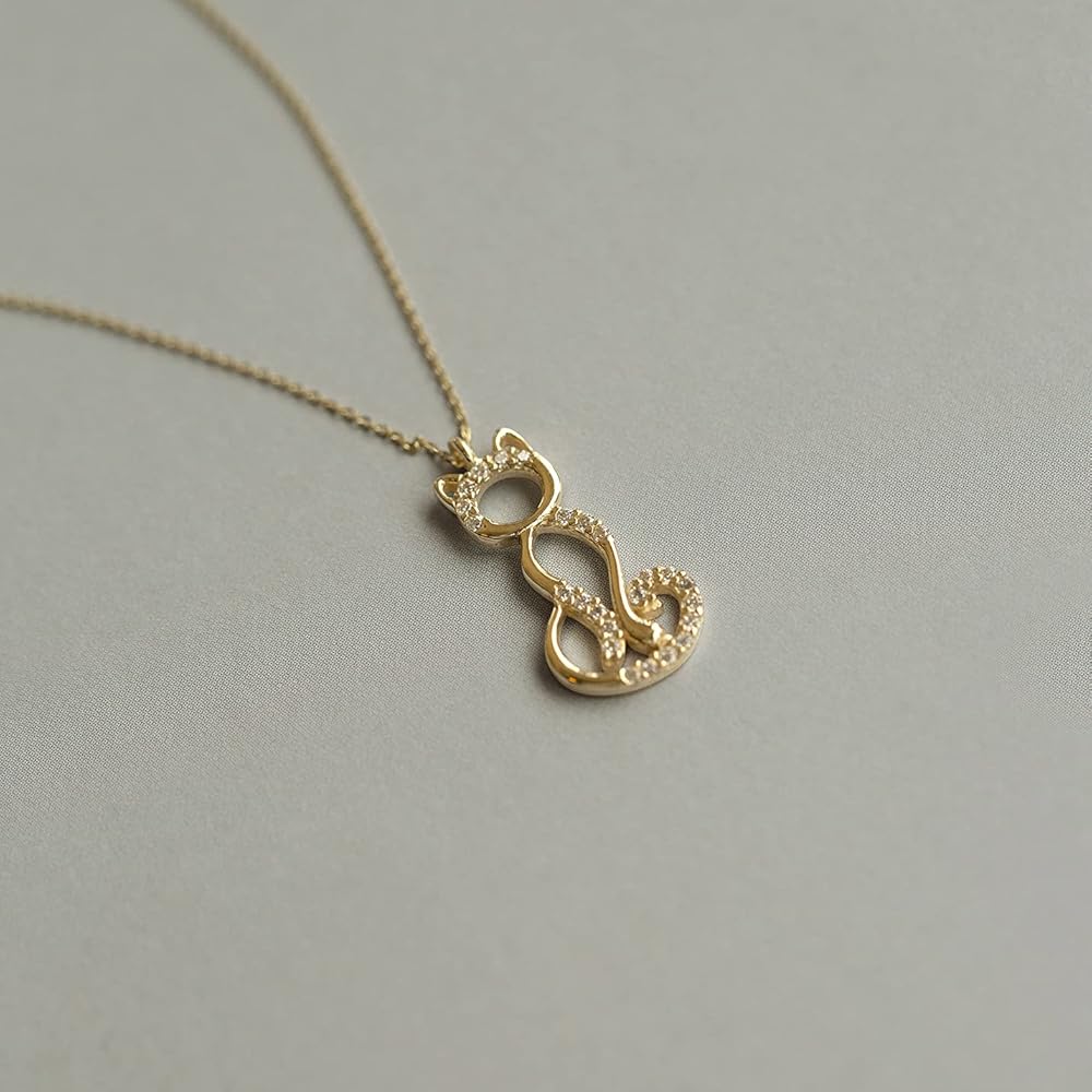 قلادة جيلين من الذهب الخالص عيار 14 قيراط للنساء | هدية لمحبي الحيوانات الأليفة
