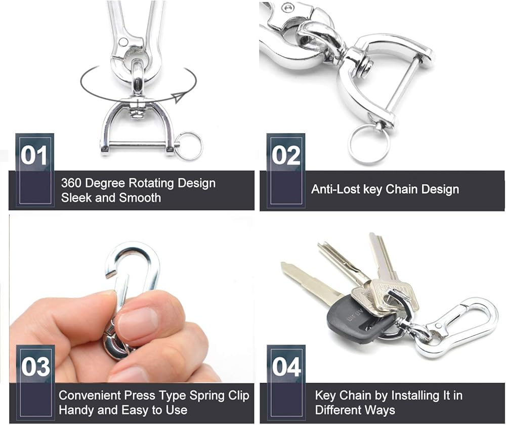 • الوظيفة - مشبك معدني لسلسلة مفاتيح السيارة من سبائك الزنك مع دوران قابل للدوران 360 درجة، سهل تركيب وإزالة مفاتيحك في حلقة على شكل حرف D. عصا مسواك أو استخدم ظفر لفتح وتثبيت الحلقة على شكل حرف D.