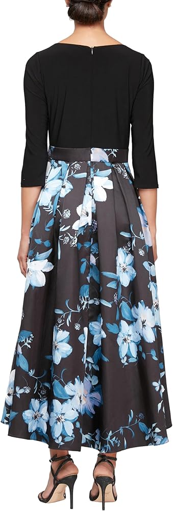 The S.L. Fashions Women's Floral High-Low Dress with Pockets combines elegance and practicality, perfect for any occasion. Featuring a vibrant multi-colored floral print, this dress is designed to turn heads. The fitted bodice with 3/4 sleeves offers a tailored look, while the full skirt with pleats and a high-low hemline adds a touch of drama. The self-belted tie accentuates the waist, and the convenient pockets provide functionality. Finished with a back zipper closure, this dress is both stylish and easy to wear.