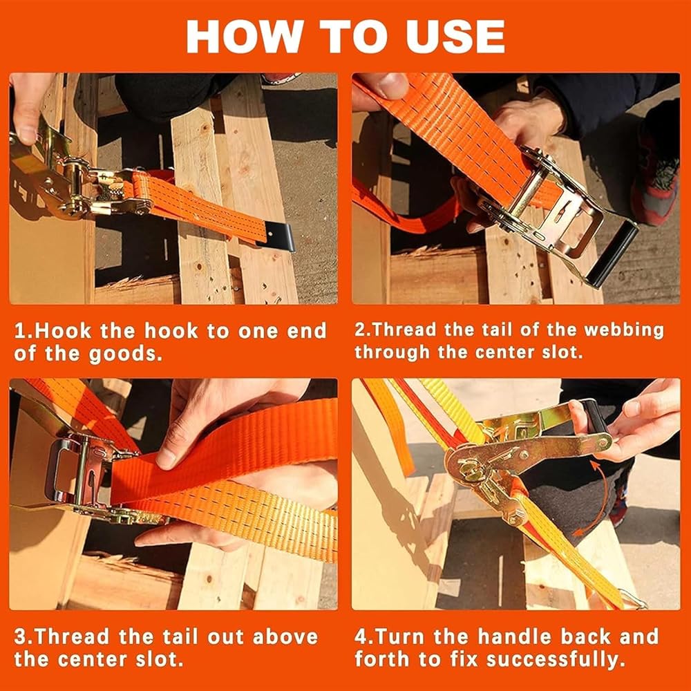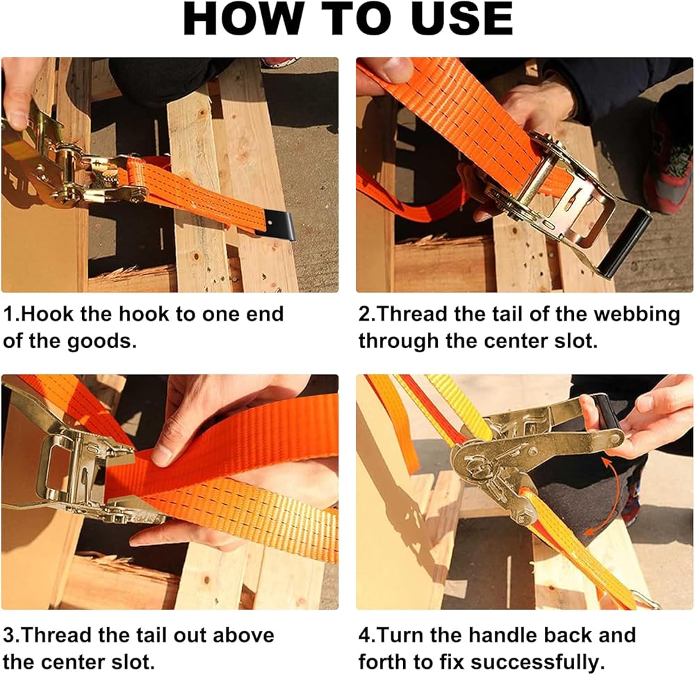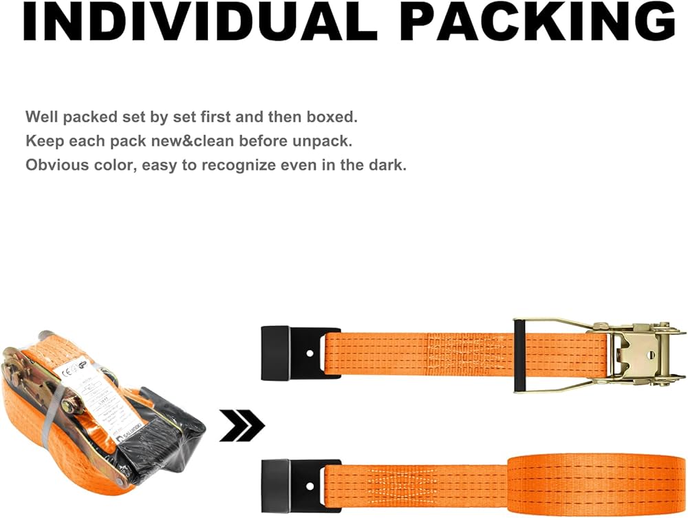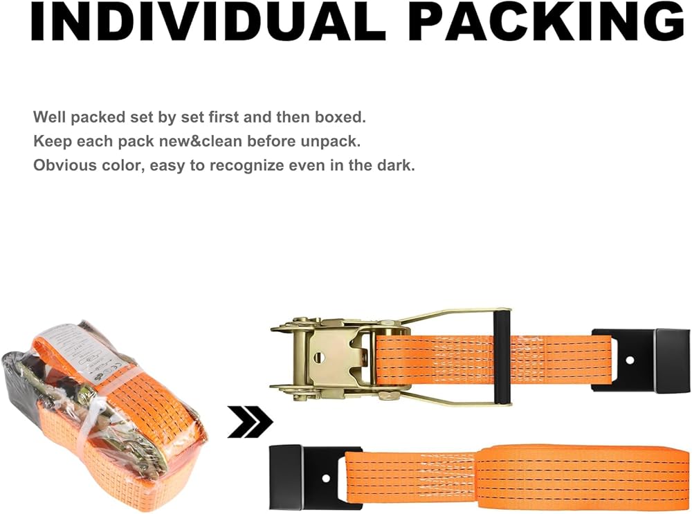 • Flatbed Straps Tie Down Ratcheting Break Strength:10000lbs, Working load: 6600lbs.