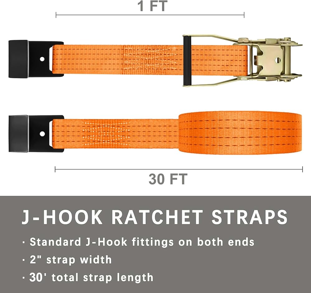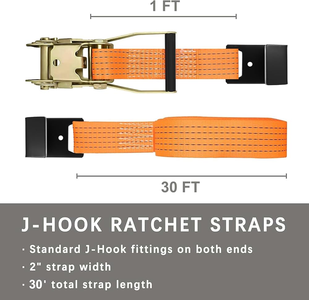 • Cargo straps ratcheting blue J hook 2 inch x 30ft has premium flat hook and is frequently used with flatbed equiment, truck supplies.