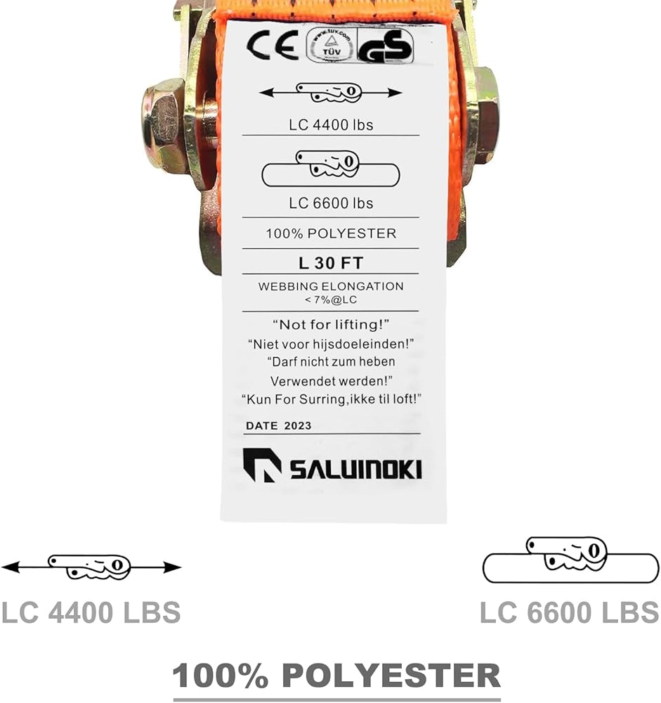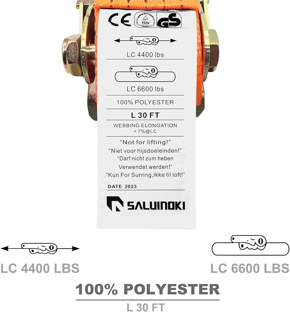 • Length of SALUINOKI Ratchet Straps Heavy Duty Flat Hook: 30ft