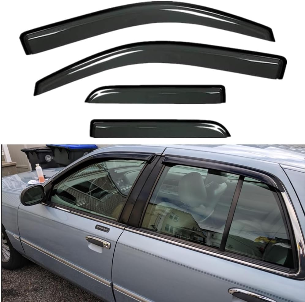 مجموعة Wensdy 94228 4 قطع من واقي النافذة الجانبية للتركيب الخارجي من واقي المطر من الشمس مناسبة لـ 1992-2011 Mercury Grand Marquis (باستثناء سقف Landau)، 98-11 Crown Vic (مؤخرات قصيرة)، 2003 Marauder