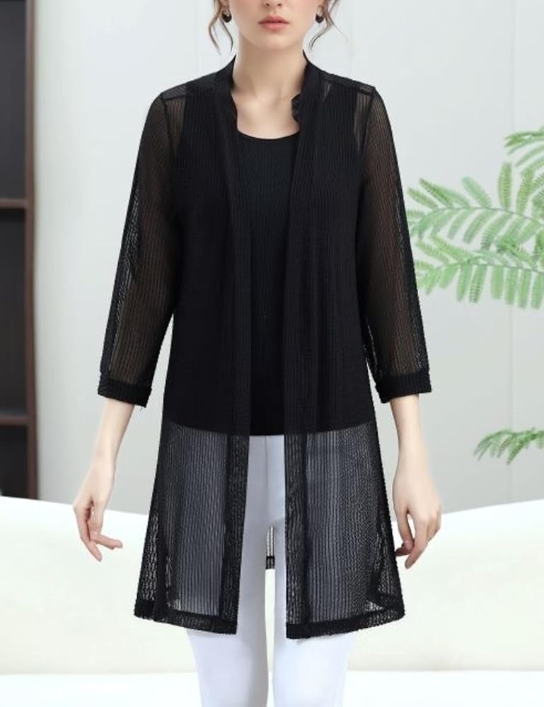 أغطية كارديجان من الدانتيل خفيفة الوزن بأكمام طويلة ومفتوحة من الأمام، يمكن ارتداؤها مع بيكيني، وسترة، وقميص قصير، وقمصان تي شيرت، وجينز، وسراويل قصيرة، وتنورات، وكعب عالٍ، وأحذية مسطحة
