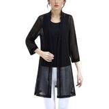 أكمام طويلة، شفافة، متوسطة الطول، لون سادة، جيبان لليدين