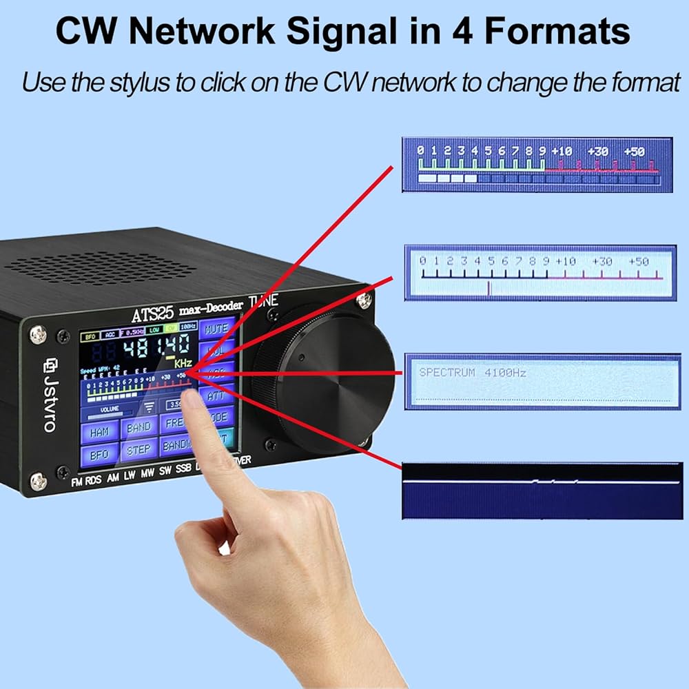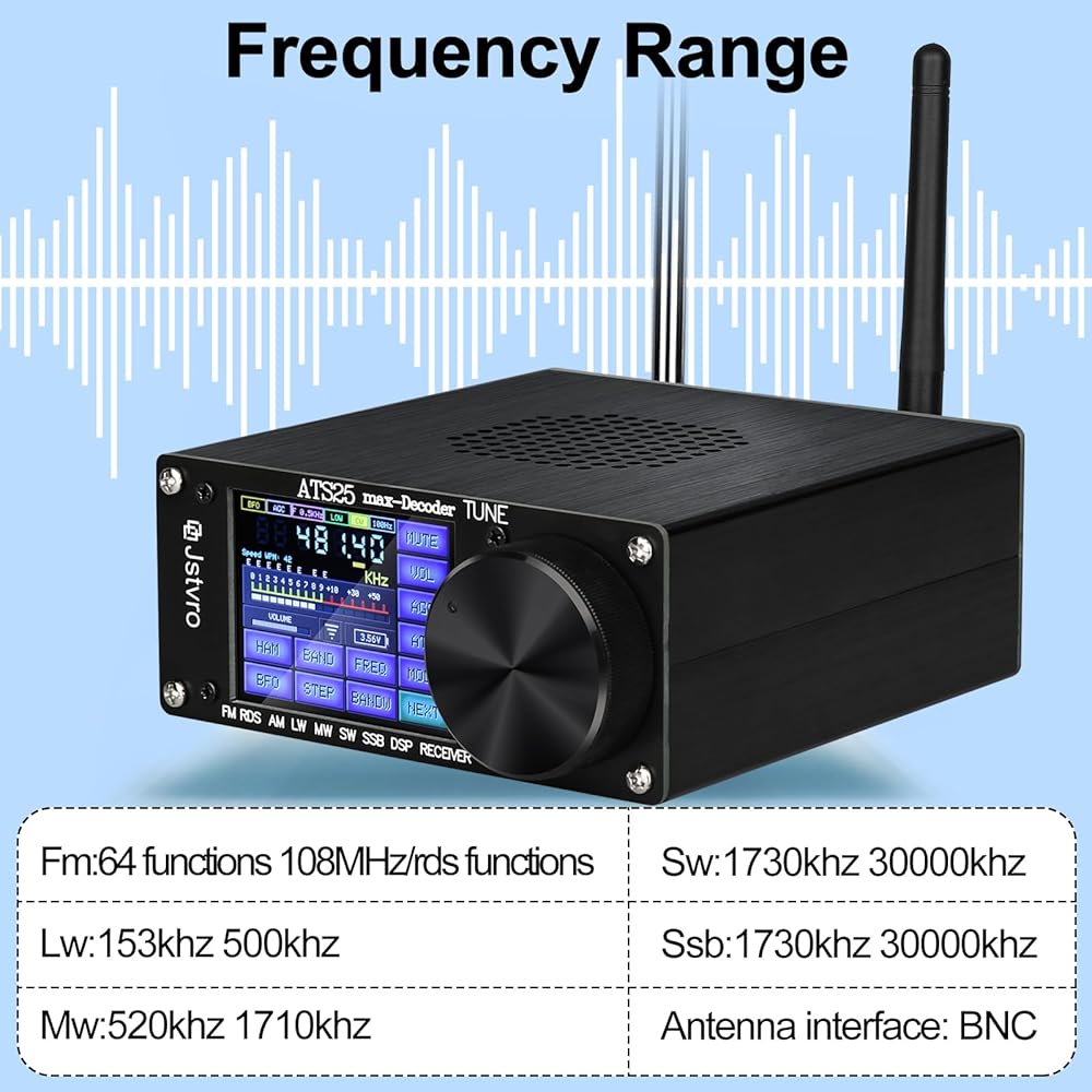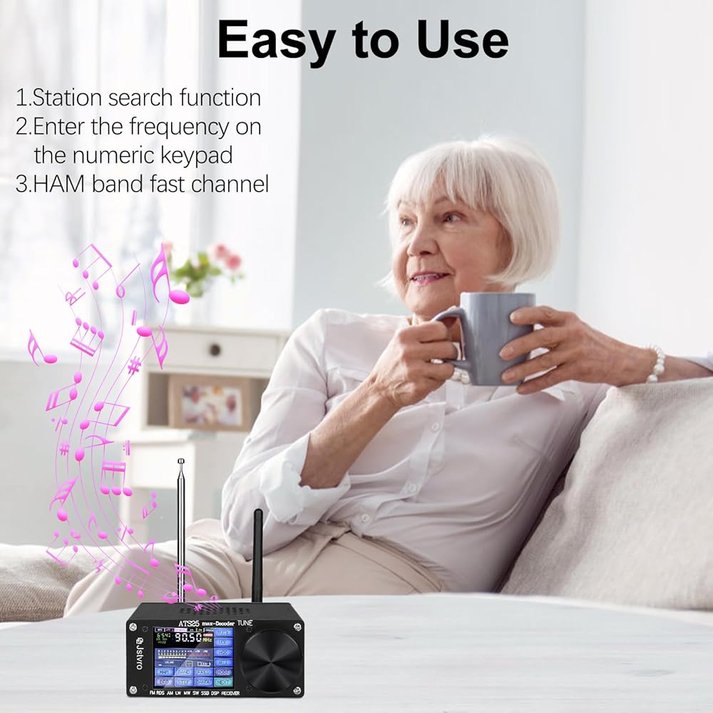 【شاشة لمس ملونة مقاس 2.4 بوصة】 يتيح لك جهاز استقبال الراديو Si4732 المزود بشاشة لمس ملونة مقاس 2.4 بوصة قراءة البيانات بشكل أكثر وضوحًا. غلاف الراديو ذو الموجات القصيرة مصنوع من سبائك الألومنيوم، وهي قوية ومقاومة للاهتراء وتتمتع بتجربة مستخدم أفضل