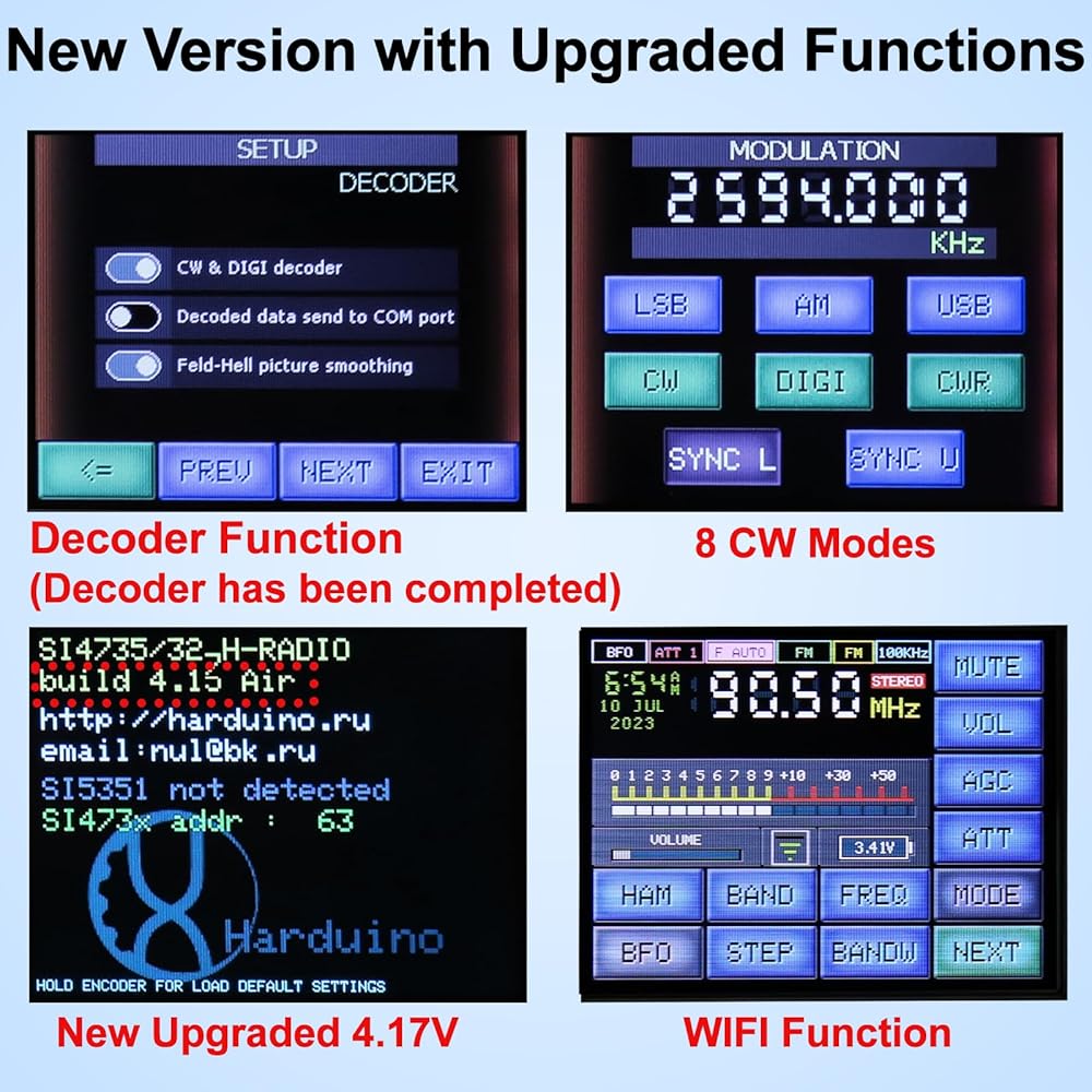 【الإصدار الجديد 5.2b Max】تم ترقية جهاز استقبال DSP SDR الجديد 5.2b Max، وتم إضافة وظيفة المسح الضوئي وتعديل الإضاءة الخلفية وإيقاف التشغيل بشكل أساسي، وكان هناك المزيد من القوائم، مع وظائف أكثر قوة، ويمكن أن تلبي احتياجات المستخدمين بشكل أفضل.
