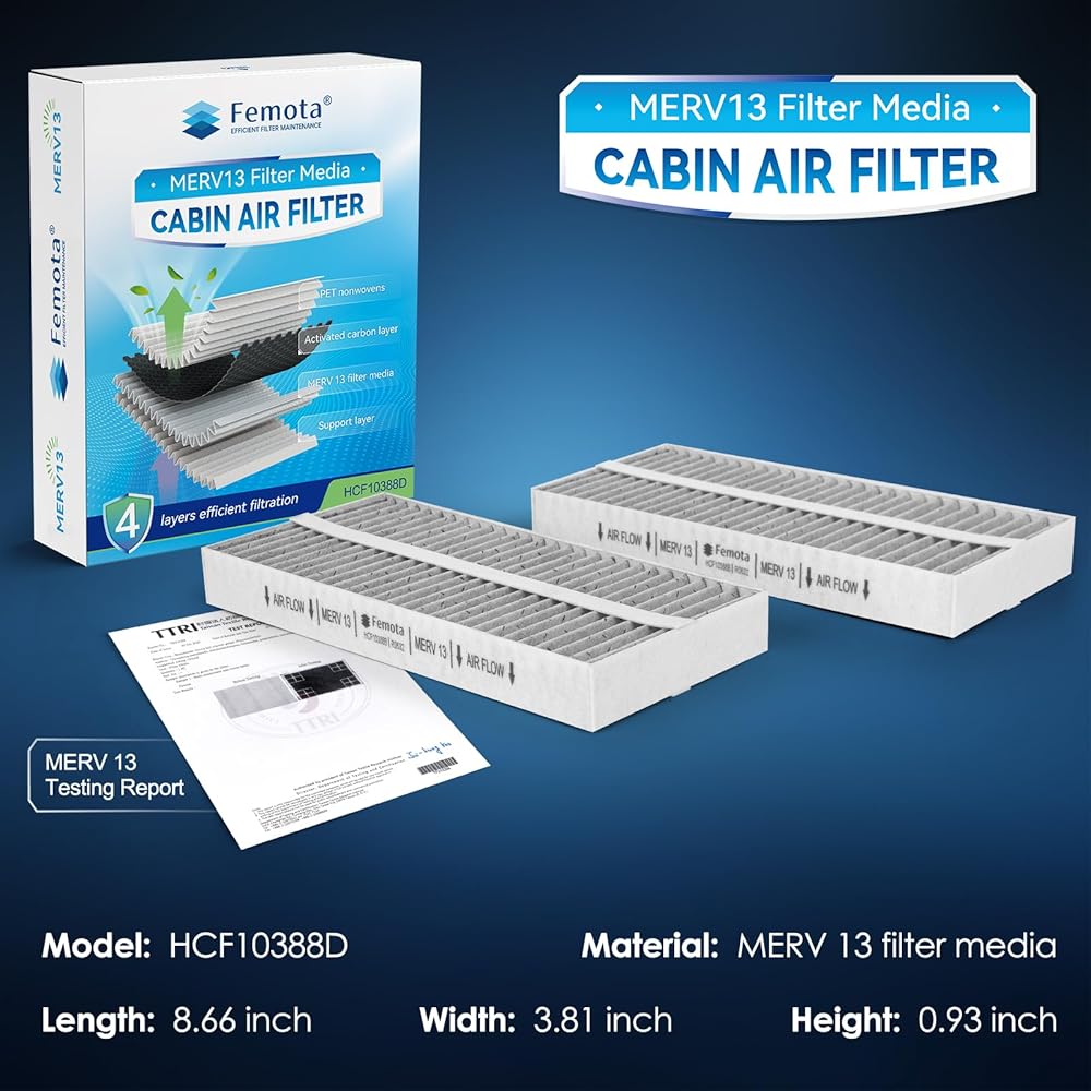 أكثر من 99% من متوسط الإيقاف: مع طريقة اختبار ASHRAE52.2:2017 10.8، يوفر هذا الفلتر أكثر من 99% من متوسط الإيقاف، ويمكنه توفير هواء نظيف ومنعش للعربة