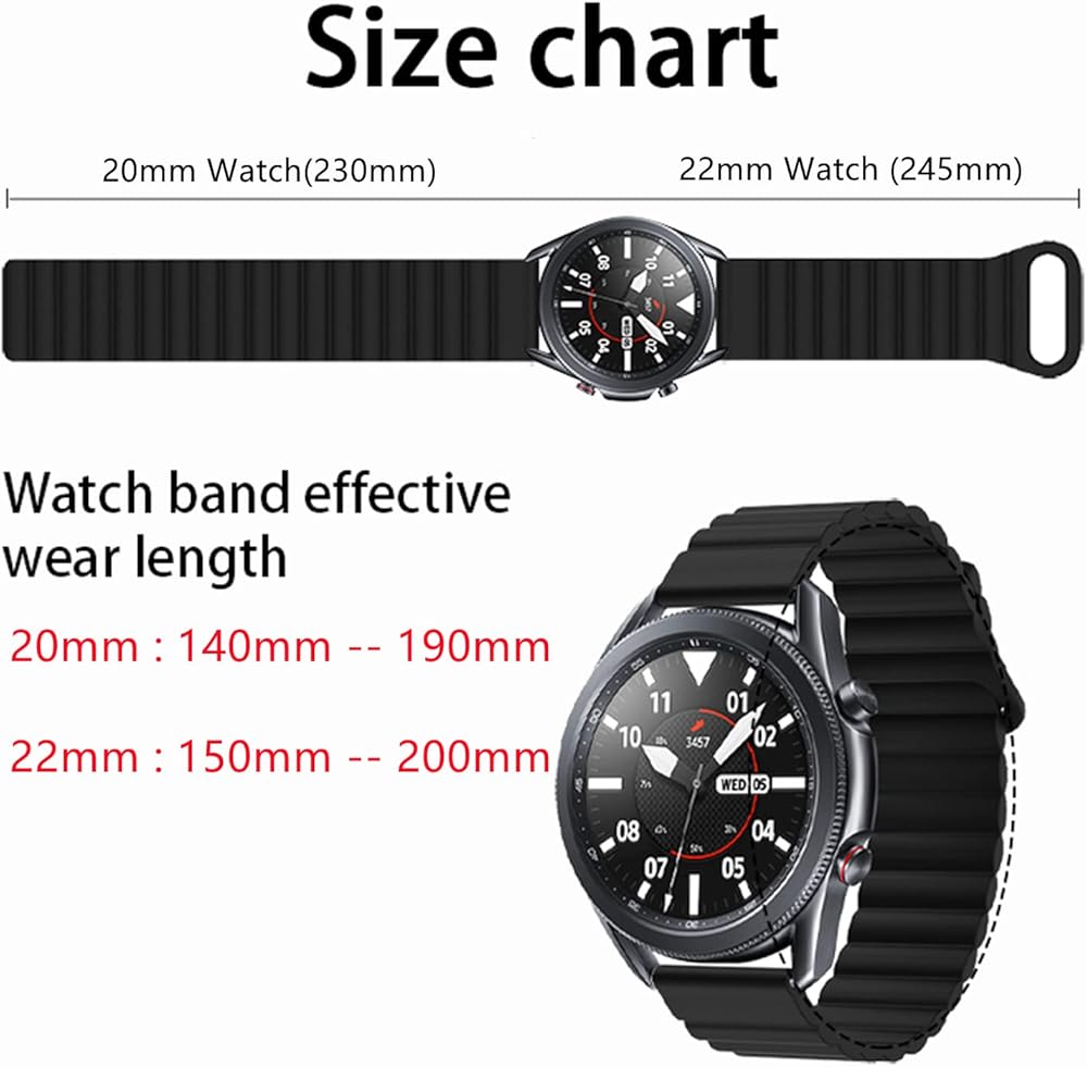 مريح وسريع: حزام التصميم المغناطيسي يسمح لك بسهولة ارتدائه وخلعه في ثوانٍ، ويمكن تعديله بحرية وفقًا لأحجام المعصم المختلفة. ساعات ذكية مناسبة بعرض العروة القياسي "20 مم" أو "22 مم".