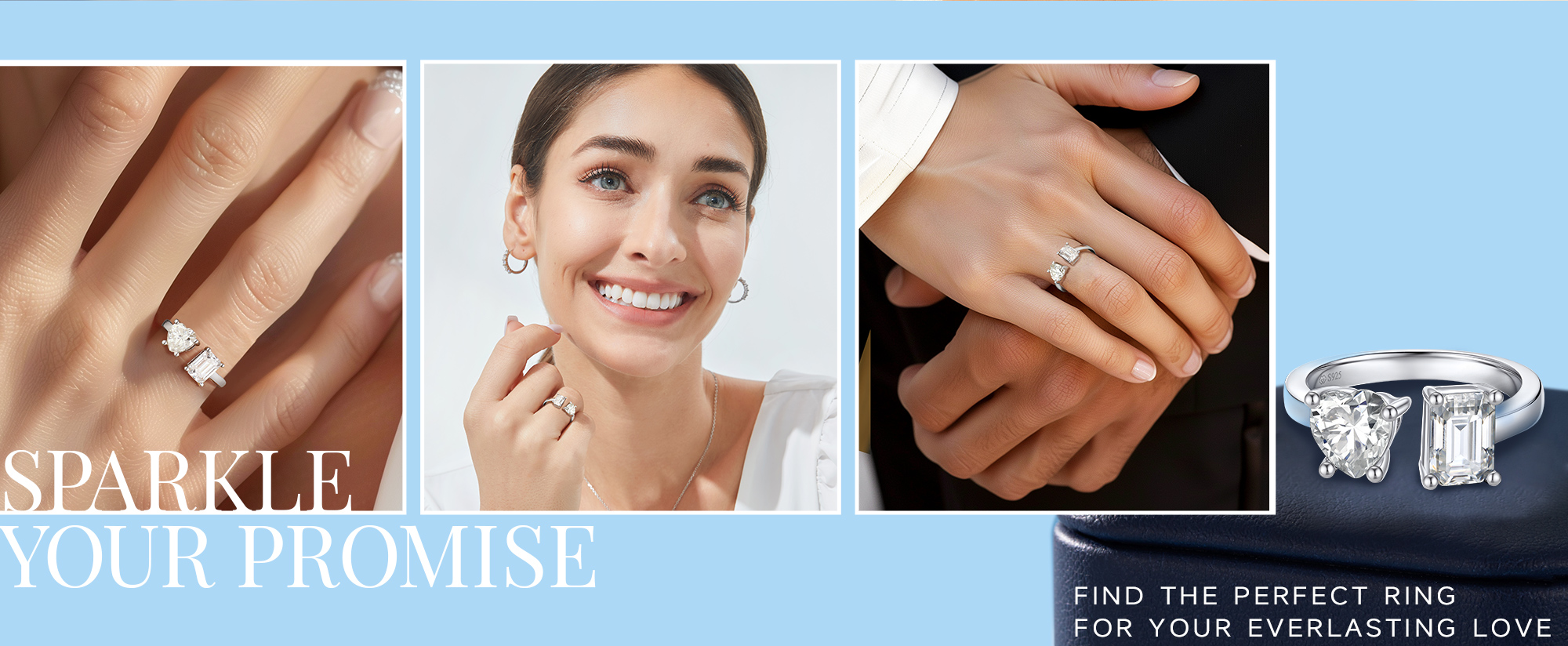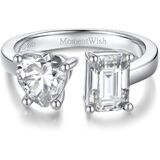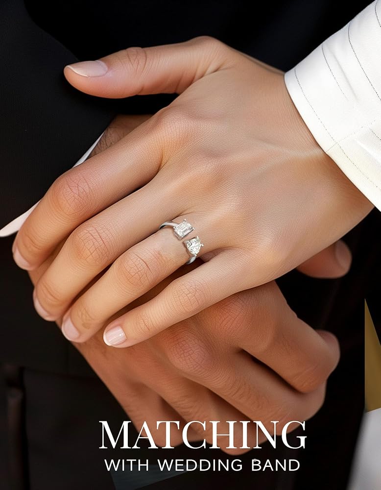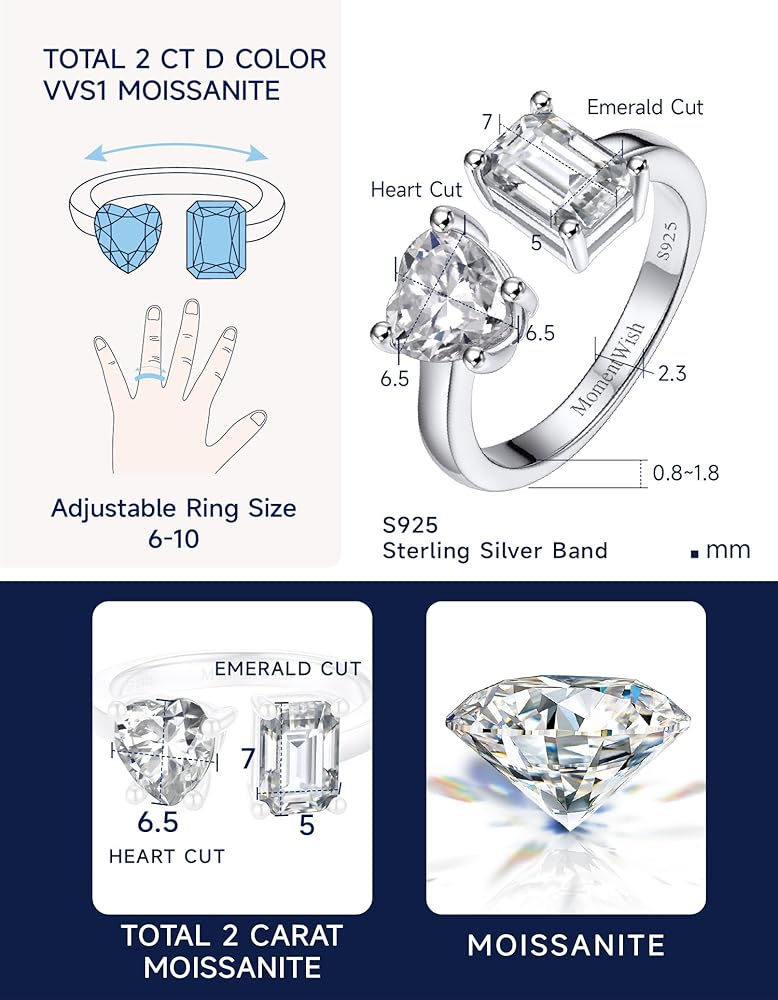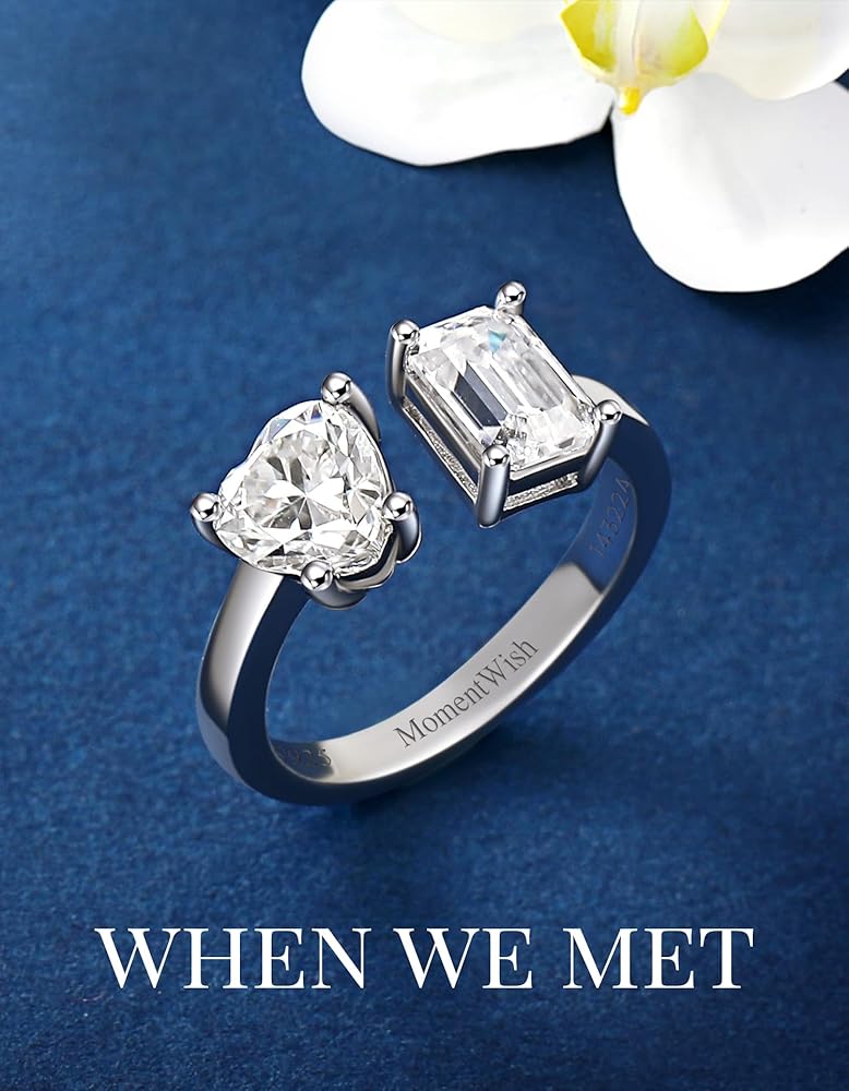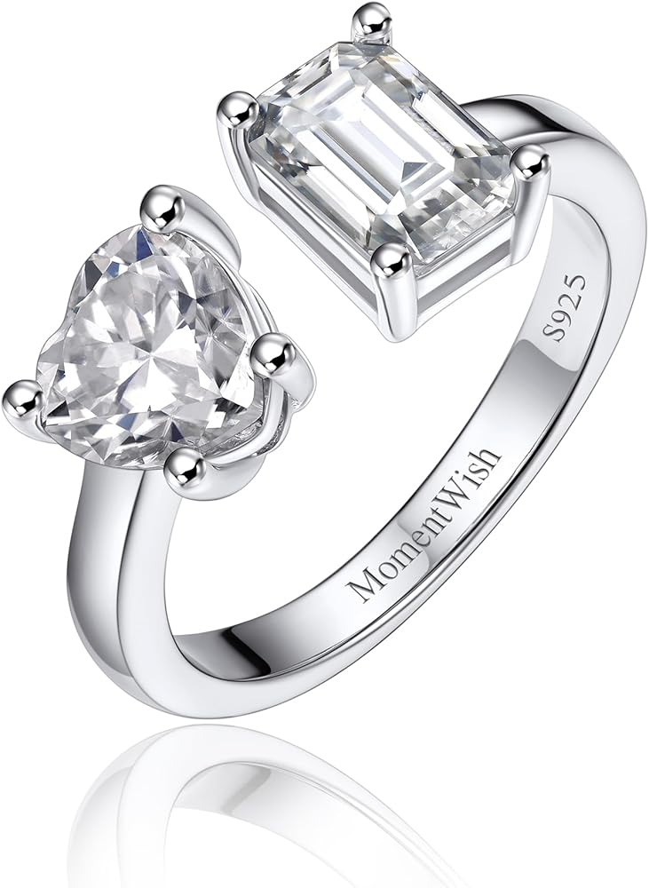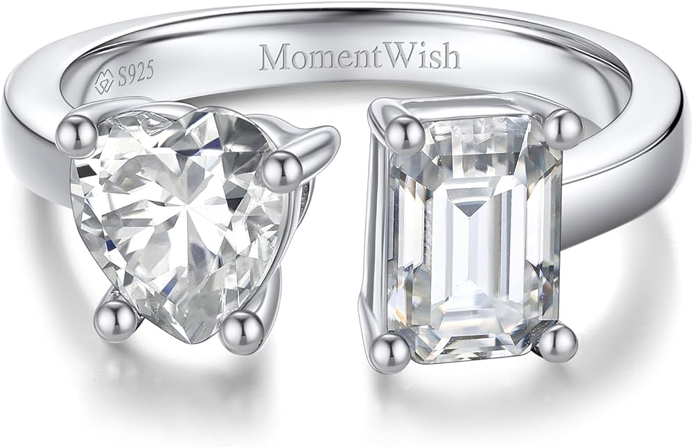 MomentWish خاتم الخطوبة، خاتم وعد المويسانتي للنساء، حلقات Toi Et Moi على شكل قلب وزمرد، خاتم زفاف من الفضة الإسترليني عيار 925 قابل للتعديل (2 قيراط، VVS1)