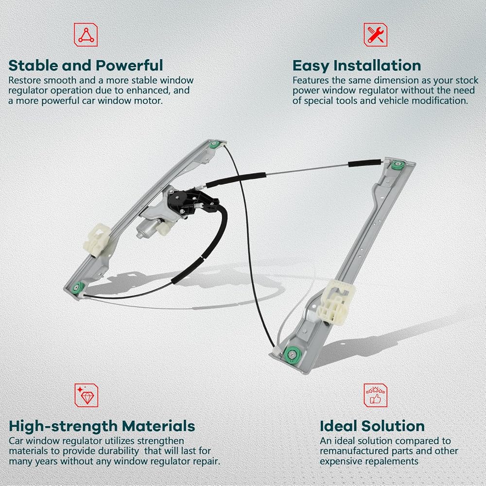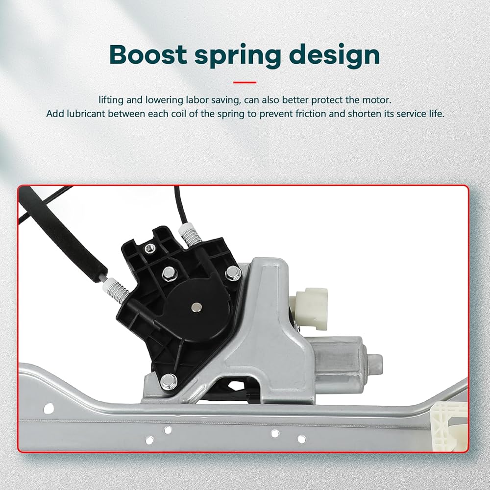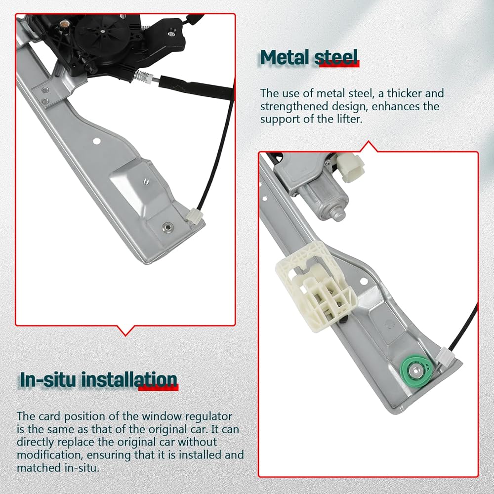 مكونات معززة - جانب السائق الأمامي الأيسر لمحرك النافذة مصنوع من سلك فولاذي سميك ولوحة فولاذية، والتي تتمتع بقدرة تحمل أقوى، وهي قوية وثابتة وتعمل بسلاسة.