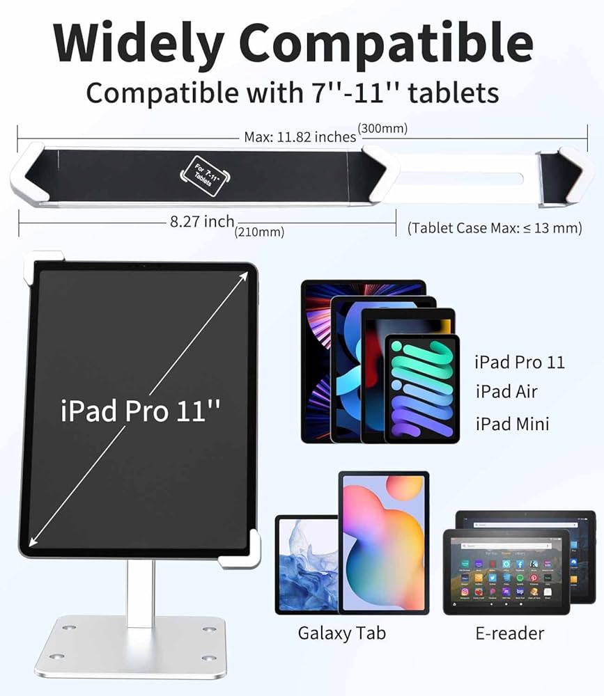 【تصميم مطور】مشابك التابلت القطرية المطورة خصيصًا مع المطاط غير القابل للانزلاق يمكنها قفل التابلت بإحكام ومنع التابلت من الخدش، وتضمن المشابك القطرية المصممة خصيصًا عدم حجب التابلت للشحن.