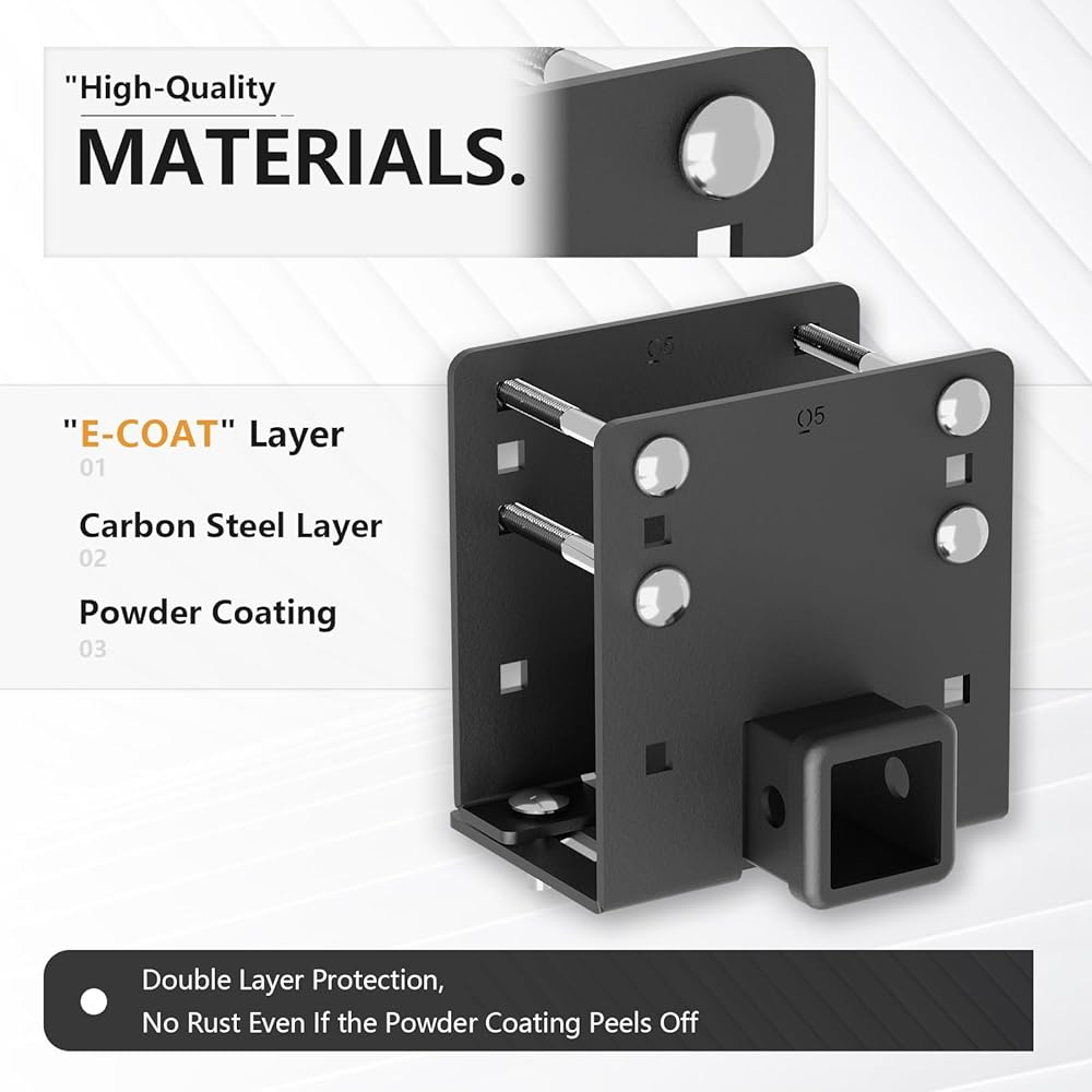 【متين وقوي】تم تصنيع جهاز الاستقبال من الفولاذ عالي القوة، مما يضمن متانة وموثوقية استثنائية. يمكنها التعامل مع احتياجات القطر المختلفة، مع الحد الأقصى لوزن المقطورة الإجمالي 3500 رطل والحد الأقصى لوزن اللسان 350 رطلاً.
