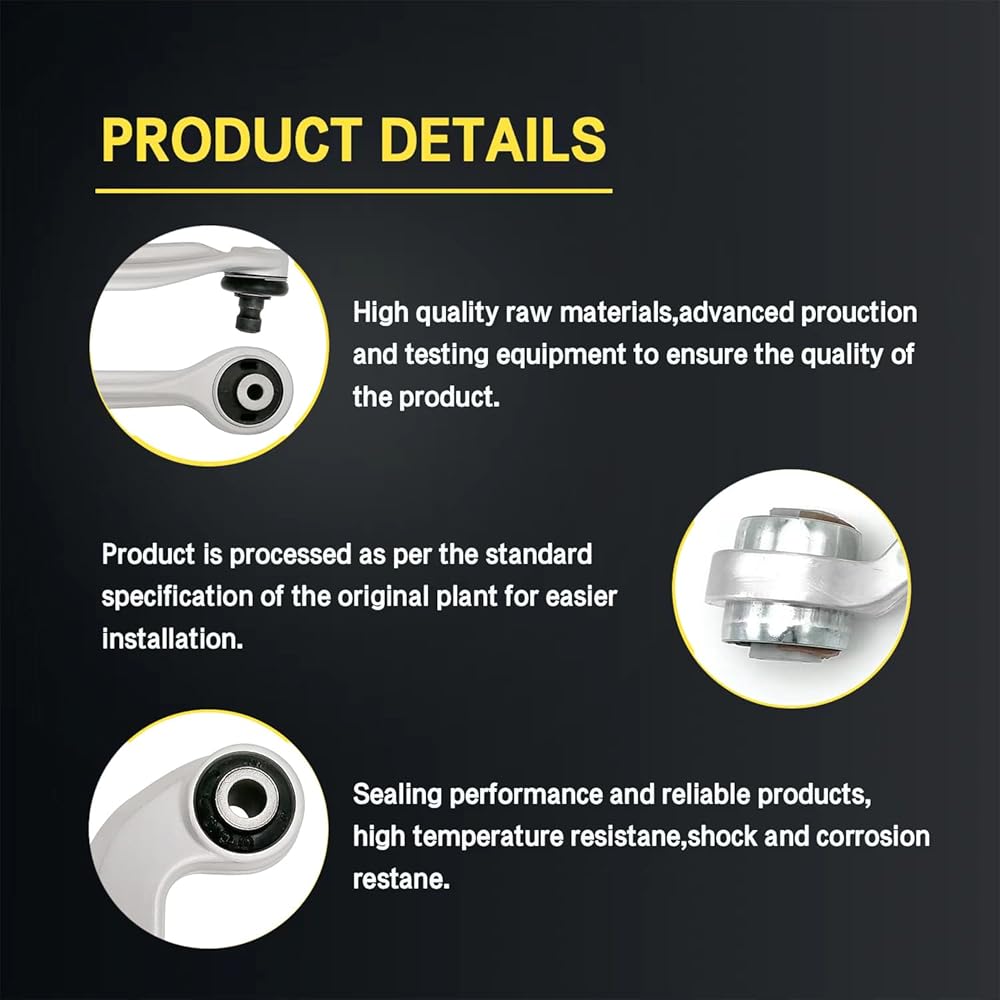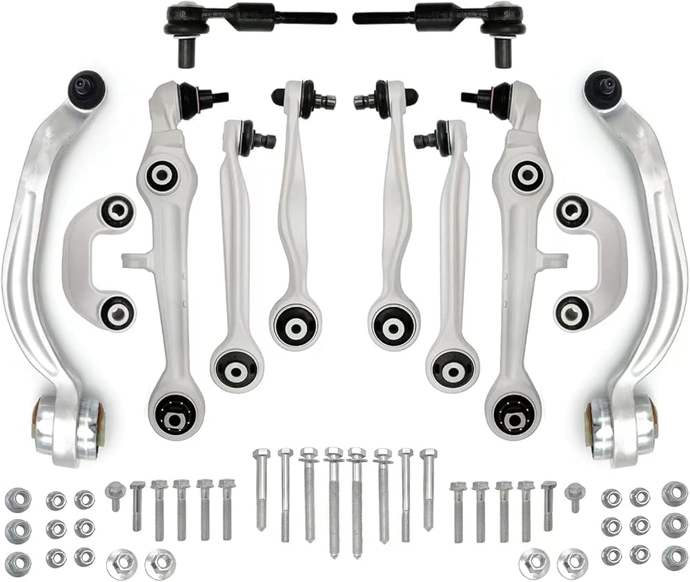 العبوة: 2 × مجموعة ذراع التحكم الأمامي السفلي للأمام، 2 × مجموعة ذراع التحكم الأمامي السفلي والخلفي، 2 × مجموعة ذراع التحكم الأمامي العلوي للأمام، 2 × مجموعة ذراع التحكم الأمامي العلوي والخلفي، 2 × نهاية قضيب التعادل الخارجي الأمامي، 2 × التأثير الأمامي رابط الشريط.