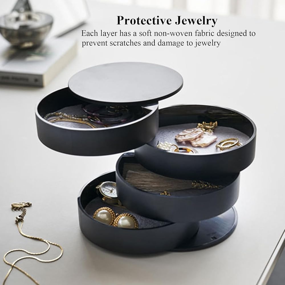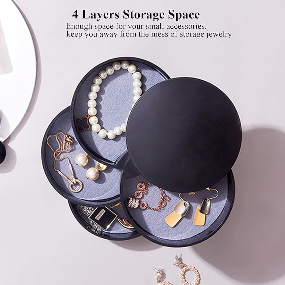 【IDEAL SIZE】Size:3.94*3.94*3.94 inch. 4 layers storage space, ideal size for travel, home or anywhere you need, to help classify your different jewelry, keep you away from the confusion of storage jewelry.