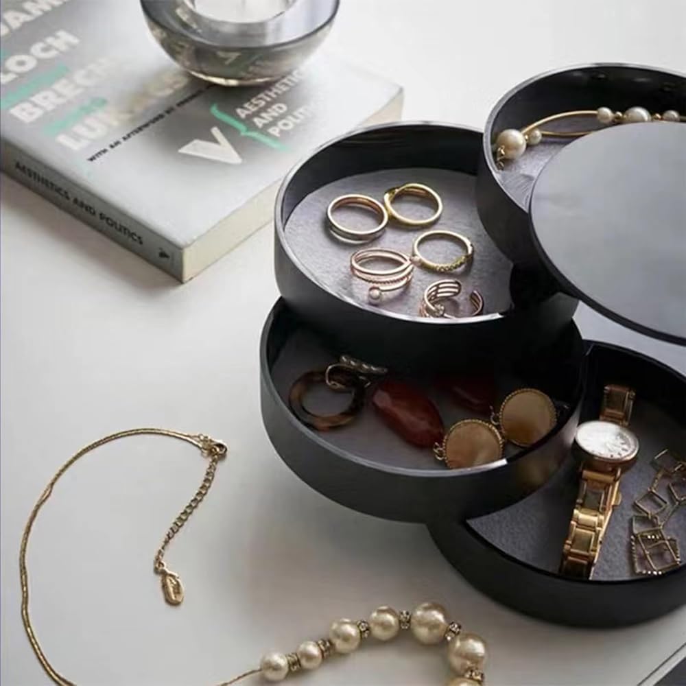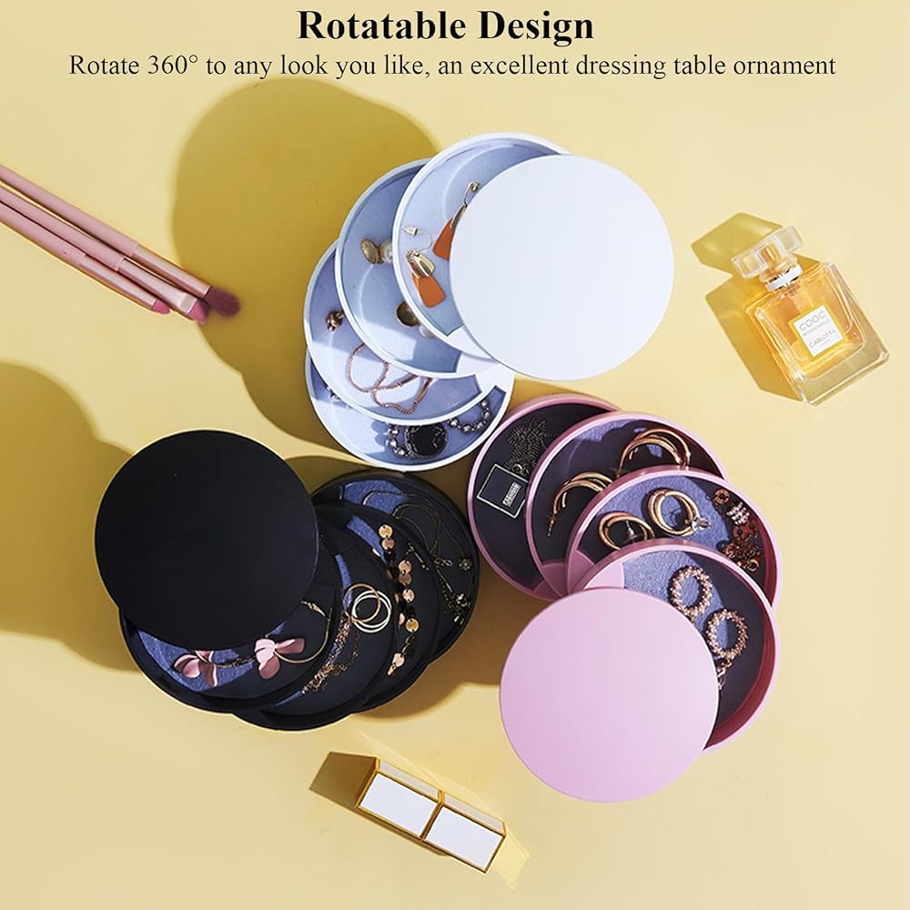 【ROTATABLE DESIGN】360 degree freely rotating, the jewelry organizer can be rotated into any look you like, excellent dressing table decor; when closed, it is a compact cylinder. The appropriate size will not occupy the space on the desktop, and can isolate dust to better maintain the luster of the jewelry.