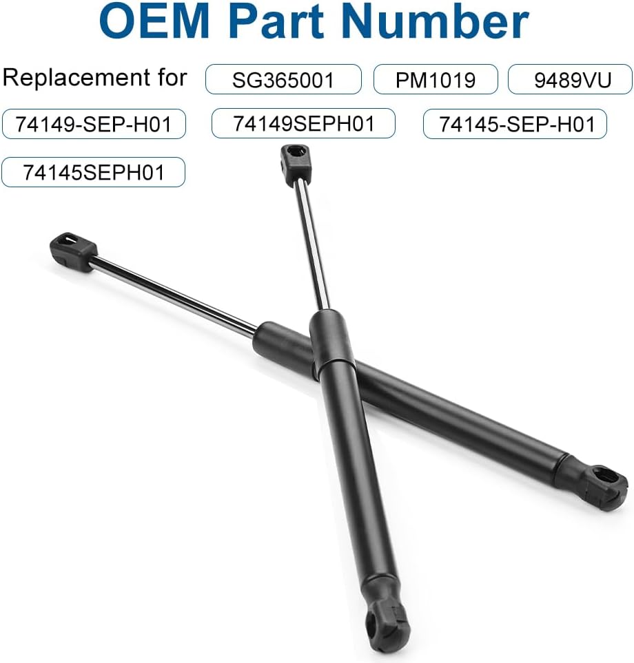 Replacement Part Numbers: The lift supports front hood struts gas springs shocks replacement for SG365001 PM1019 9489VU 74149-SEP-H01 74149SEPH01 74145-SEP-H01 74145SEPH01