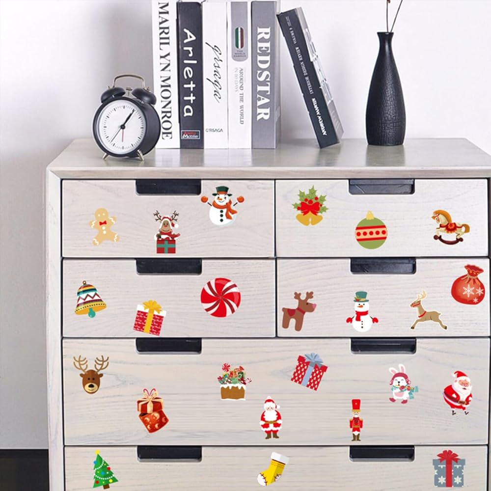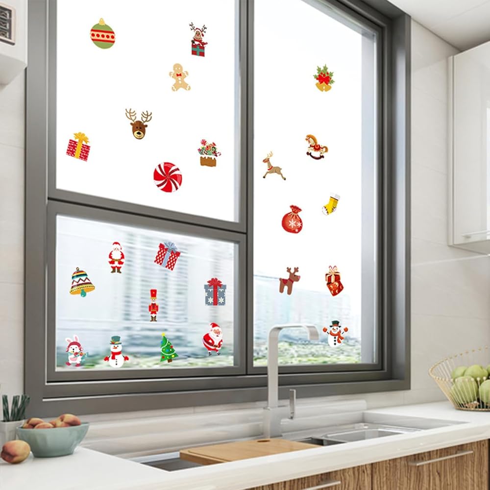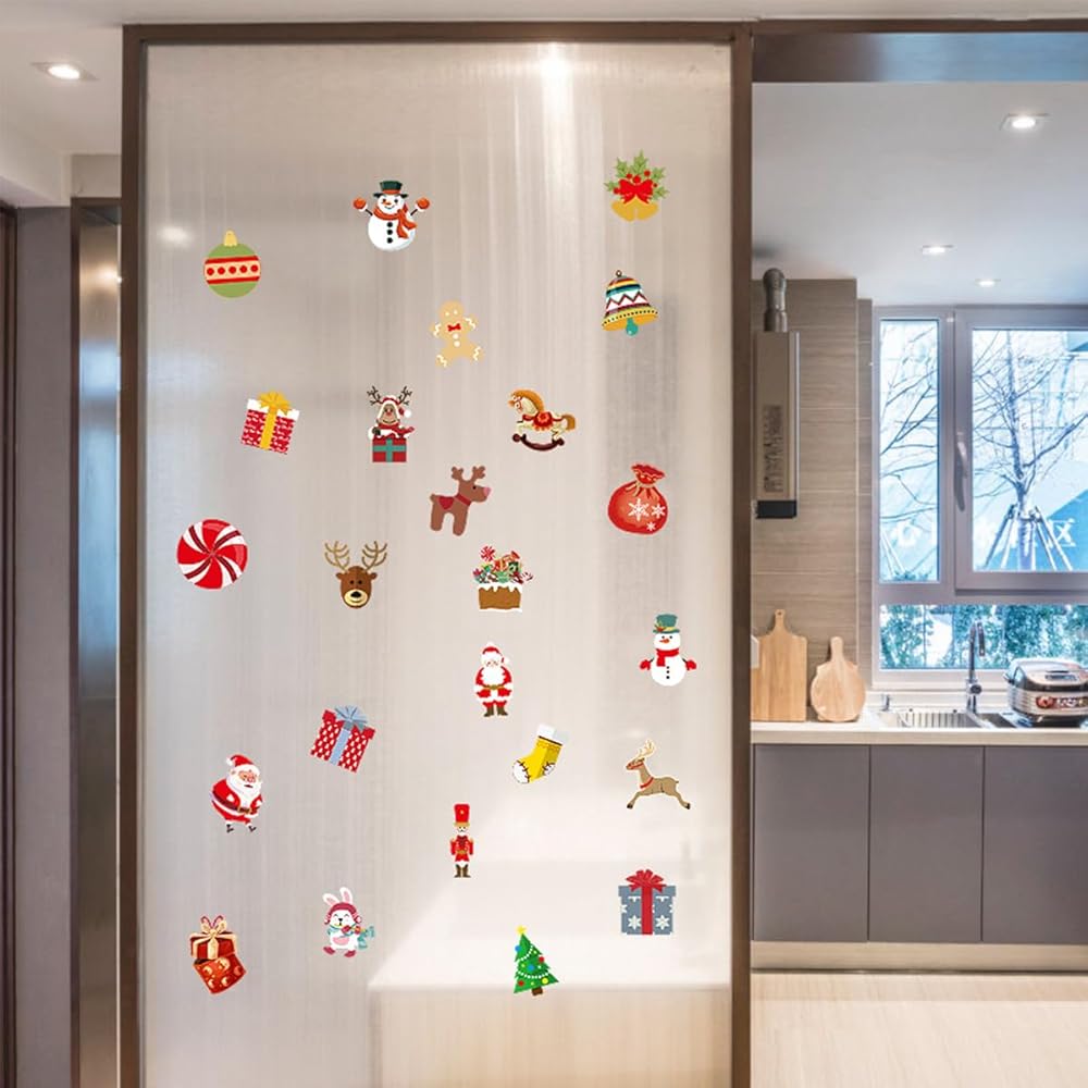 72 قطعة من ملصقات نوافذ عيد الميلاد من AUOCATTAIL، علامات زجاجية لعيد الميلاد والنبيذ، ملصقات لاصقة ثابتة قابلة لإعادة الاستخدام، سحر نبيذ الشمبانيا المحمول، سانتا إلك، زينة جرس شجرة عيد الميلاد لعلامات حفلات النبيذ