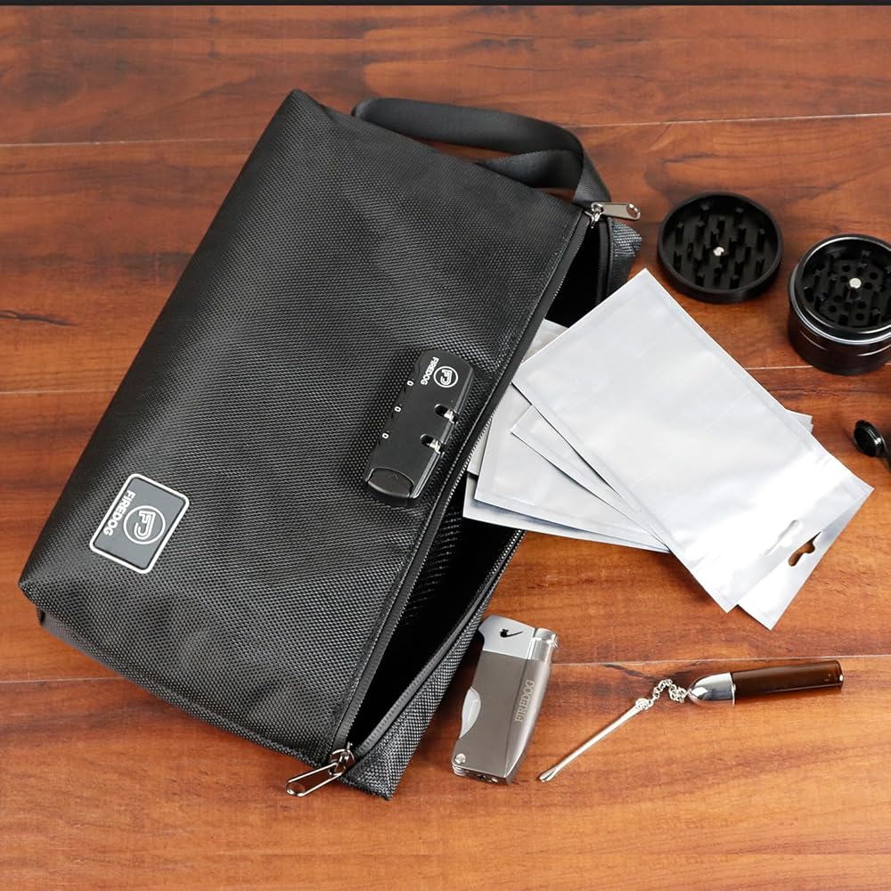 أكياس FIREDOG مطبوعة مقاومة للرائحة مع قفل مركب، حاوية حقيبة تخزين مبطنة بالكربون ومضادة للرائحة لتخزين السفر (10.8 بوصة × 8.8 بوصة)