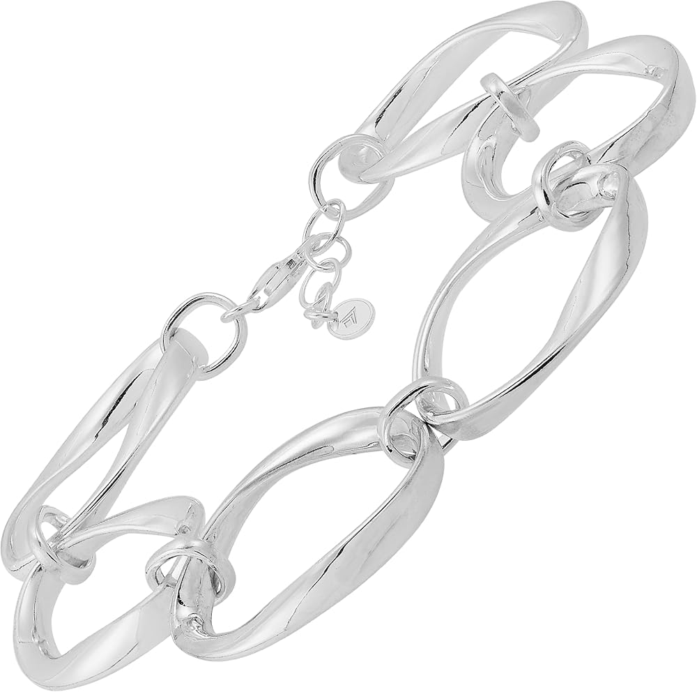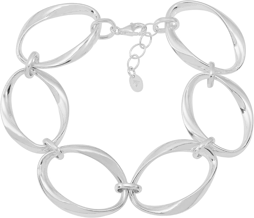 لقد وجدناه - السوار المثالي المفقود من خزانة ملابسك! إنها تتألف من وصلات فضية كبيرة تدلي ببيان على معصمك. إنها تتطابق مع كل شيء ولا بد أن تكون القطعة الأكثر تنوعًا لديك. امزجيه مع معادن أخرى، وأساور وأساور أنحف وأنماط مطرزة. تأتي القطعة مع ختم جودة من الفضة الإسترلينية ".925" كرمز لجودة المنتج المضمونة. صنع في إيطاليا.
