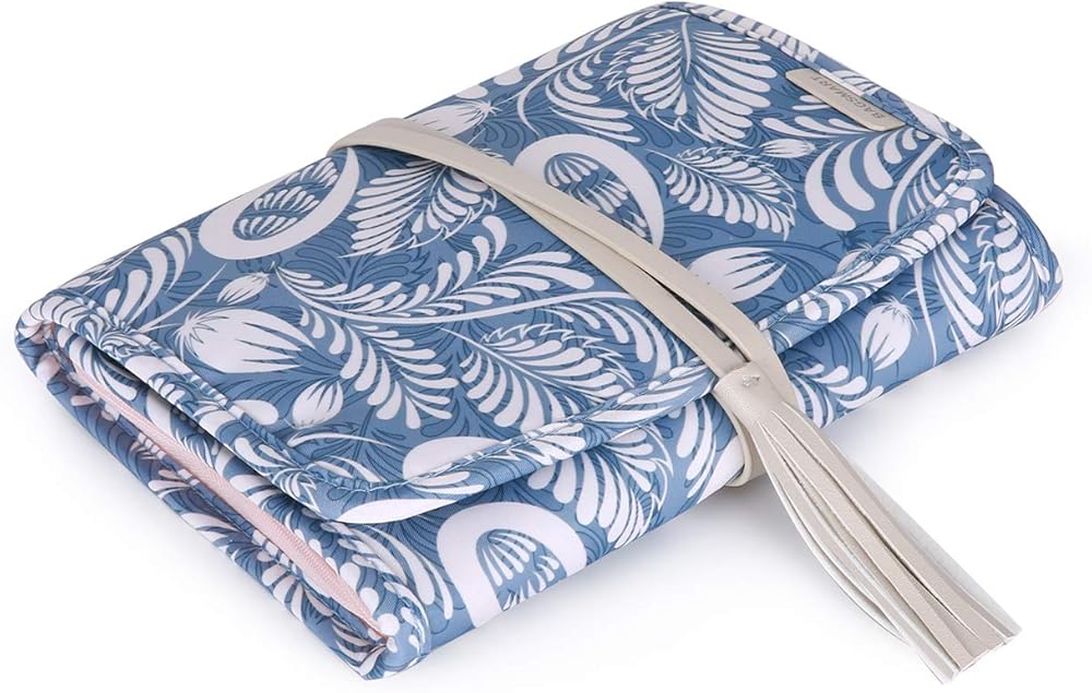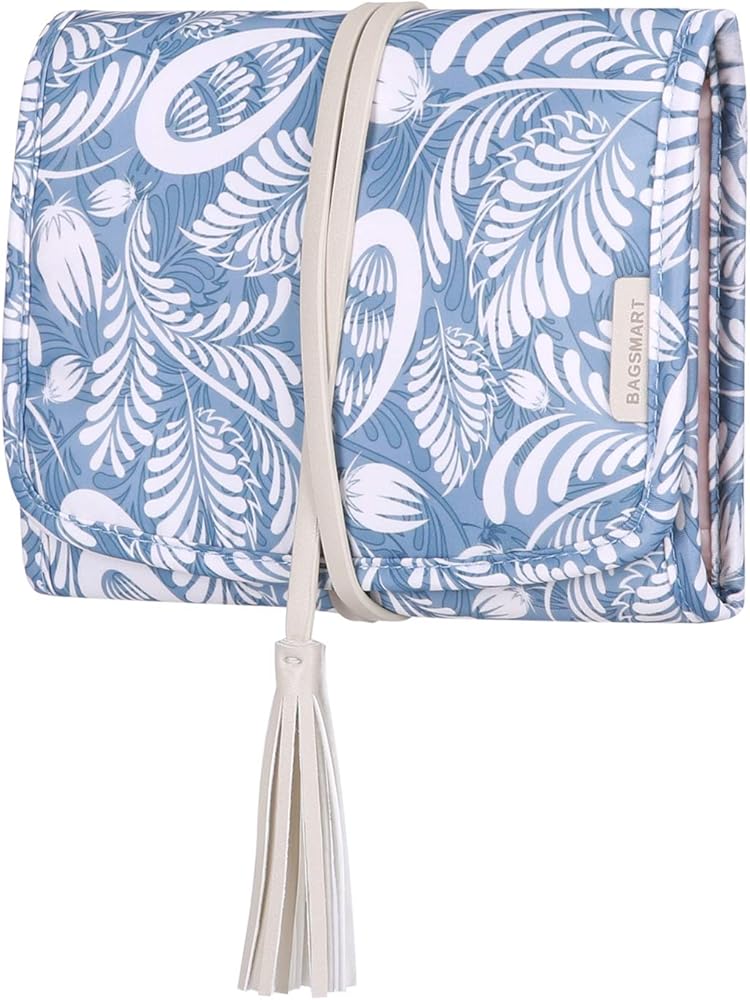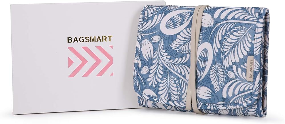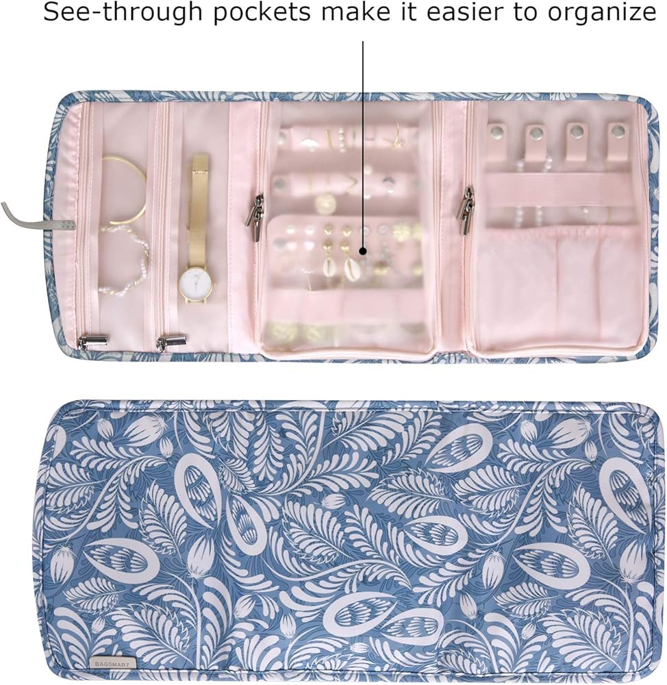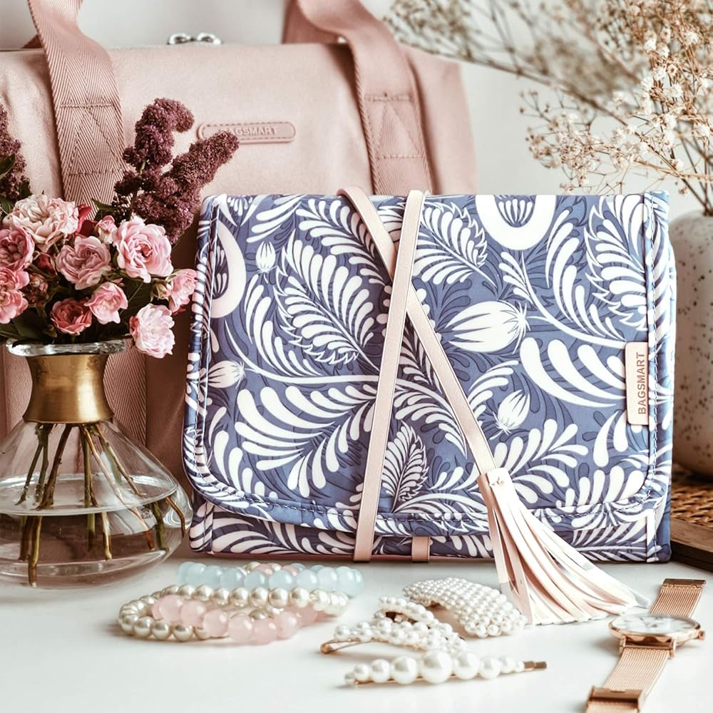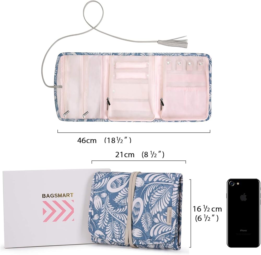 حقيبة تنظيم مجوهرات السفر من BAGSMART، بكرة مجوهرات زهرية قابلة للطي مع شرابة لخواتم الرحلات والقلائد والأقراط والأساور