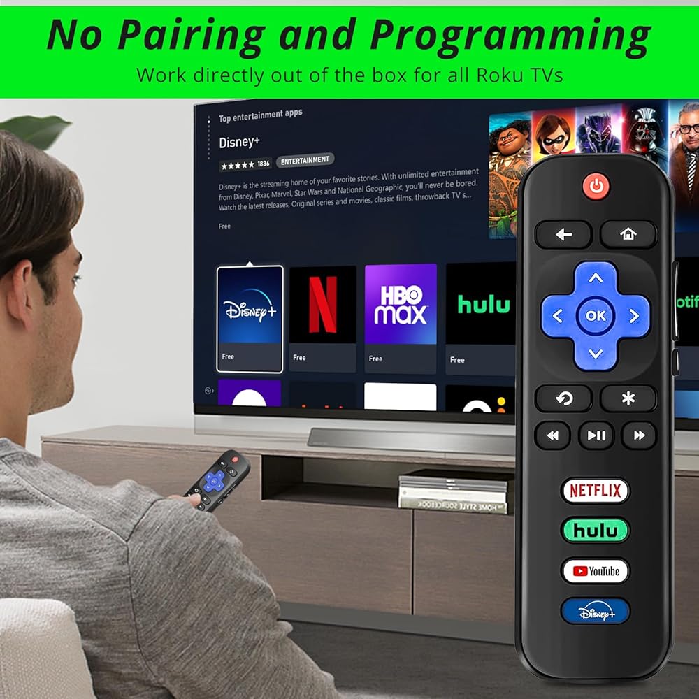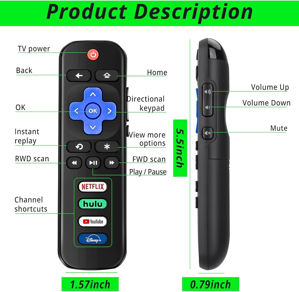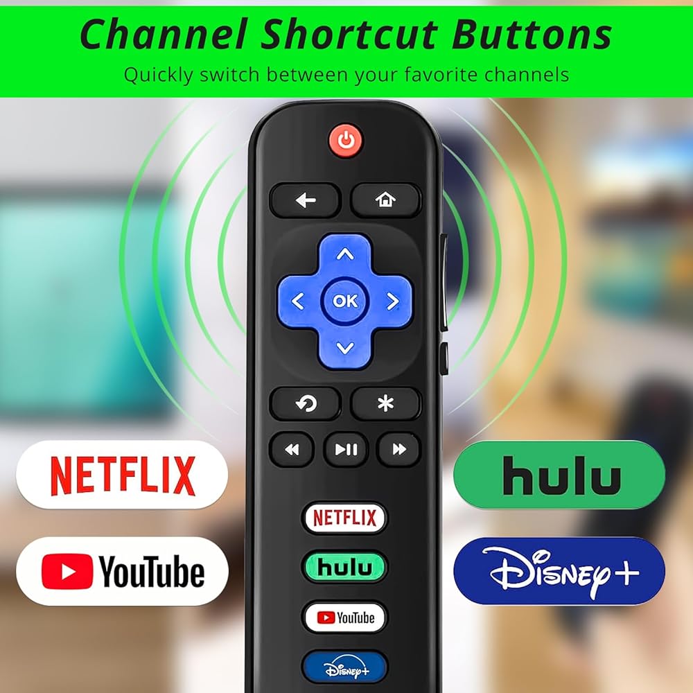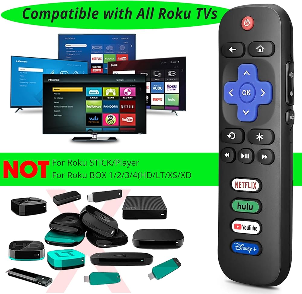 【متوافق مع】 جهاز تحكم بديل عالمي للتلفزيون لجميع أجهزة تلفزيون سلسلة Roku، متوافق مع تلفزيون TCL Roku، وتلفزيون Hisense Roku، وتلفزيون Onn Roku، وتلفزيون Sharp Roku، وتلفزيون Element Roku، وتلفزيون Westinghouse Roku، وتلفزيون Philips Roku، وتلفزيون Insignia Roku، وJVC Roku تلفزيون وتلفزيون RCA Roku وتلفزيون Hitachi Roku وتلفزيون Sanyo Roku.