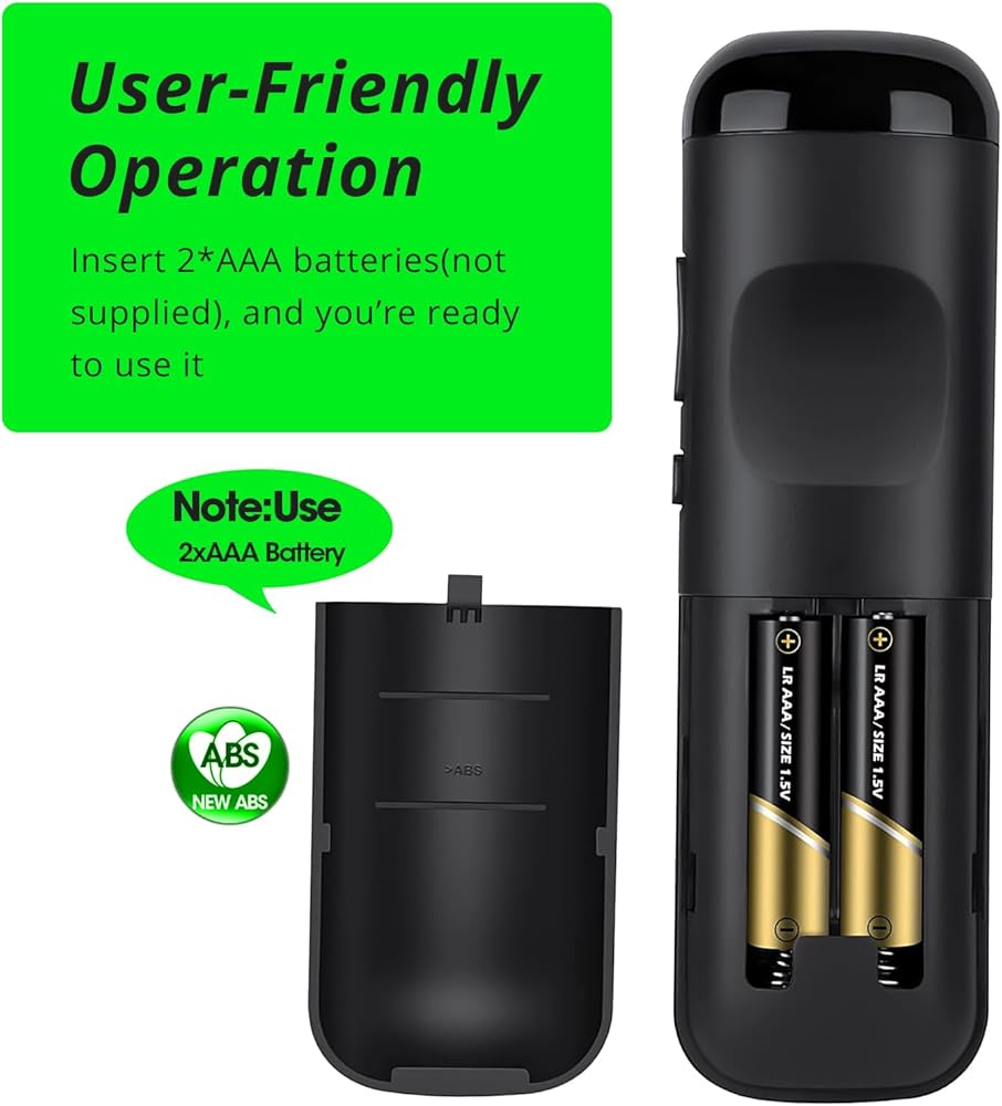 【سهل الاستخدام】لا يمكن أن يكون استخدام جهاز التحكم عن بعد الخاص بنا أسهل نظرًا لعدم الحاجة إلى برمجة أو إعداد. ما عليك سوى إدخال قطعتين*بطاريات AAA، وستكون جاهزة للاستخدام! (لا يتم تضمين البطاريات)