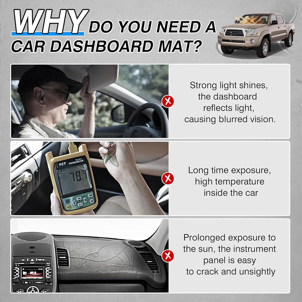 غطاء Cartist Dash متوافق مع ملحقات Toyota Tacoma Pickup 2005-2015 غطاء لوحة القيادة حصيرة غير قابلة للانزلاق سجادة واقية من الشمس وهج الأشعة فوق البنفسجية