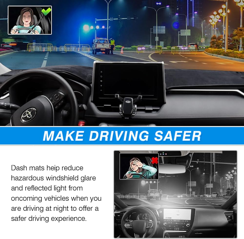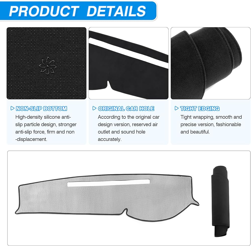 • 【مضاد للوهج وثابت اللون】- غطاء لوحة أجهزة القياس تاكوما مصنوع من نسيج سويدي ناعم وأملس. الجزء السفلي من السيليكون الرمادي الخاص يجعل الجزء السفلي من بساط لوحة القيادة قابلاً للإمساك، والذي يمكن أن يبقى ثابتًا ولا يتحرك أثناء حركة السيارة، مما يمنع الانزلاق والتأثير على سلامة القيادة.