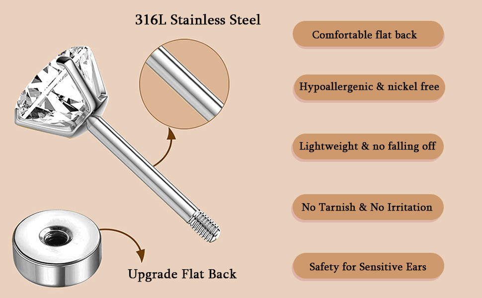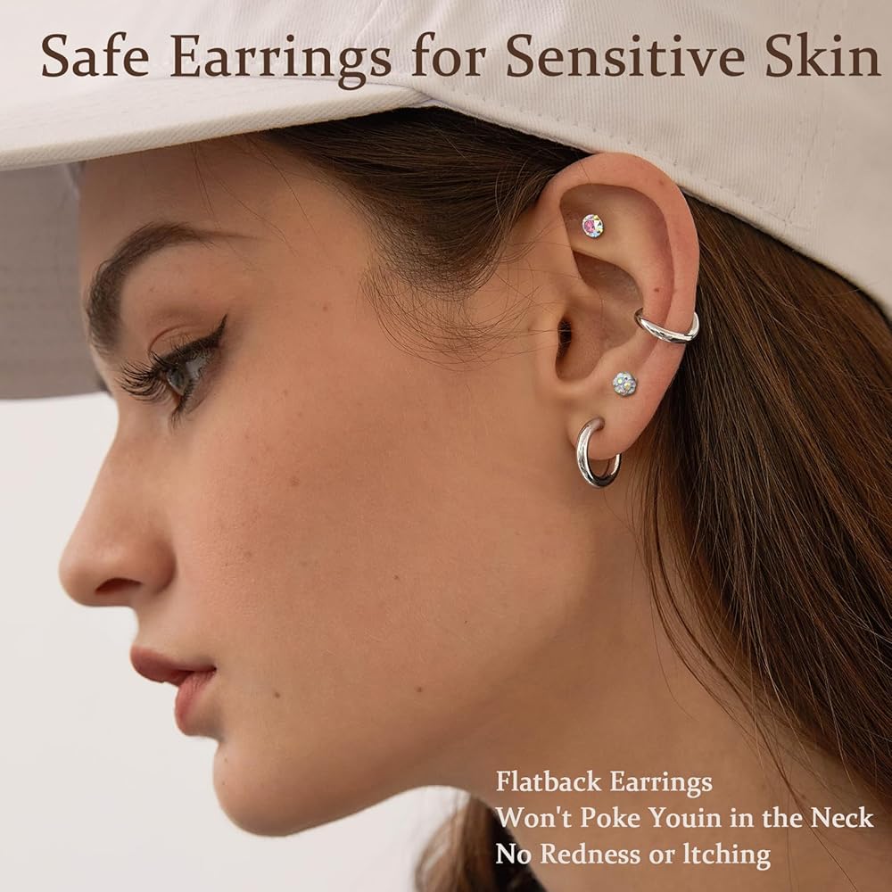 • مادة آمنة: الأقراط المرصعة اللطيفة مصنوعة من الفولاذ المقاوم للصدأ مما يضمن بقاء الأقراط خالية من البريق والنيكل والرصاص ولا تسبب الحساسية لفترة طويلة.