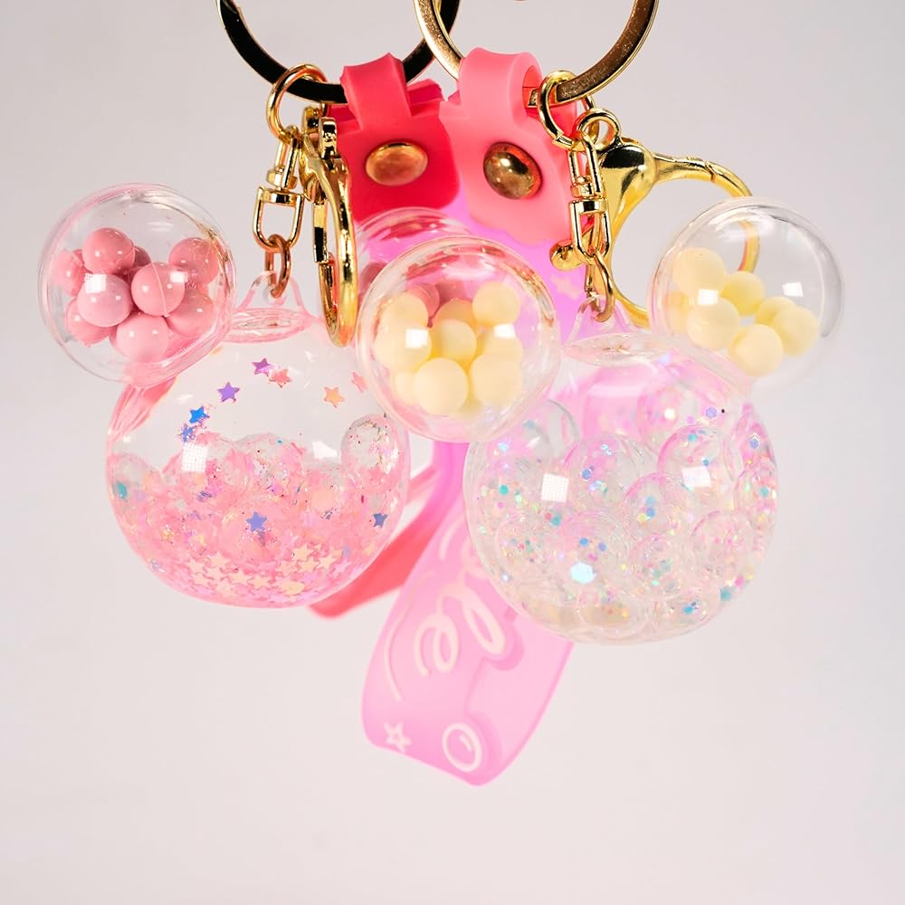 ✨ CUTE & AESTHETIC DESIGN: This mouse ears charm is infused with aesthetic floating beads and glitters. This keychain is designed to make you smile and feel relaxed.