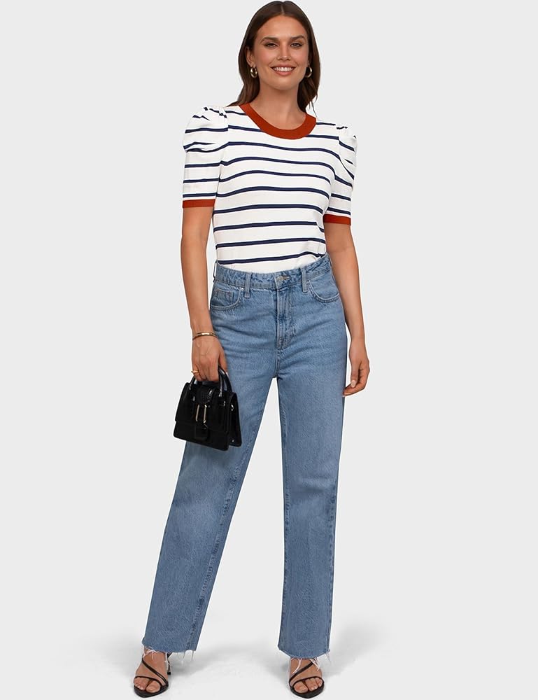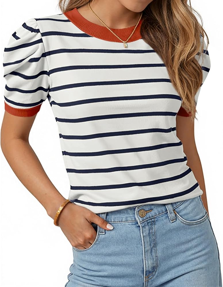 التصميم: تتميز هذه القمصان الصيفية للسيدات برقبة دائرية كلاسيكية، وأكمام قصيرة منتفخة فريدة من نوعها ستجعلك أكثر أناقة وسحرًا، وملمس القماش المحبوك مناسب للارتداء في الربيع والصيف والخريف والشتاء، هذه القمصان الأساسية للحياة اليومية أو العمل أو ترافيل