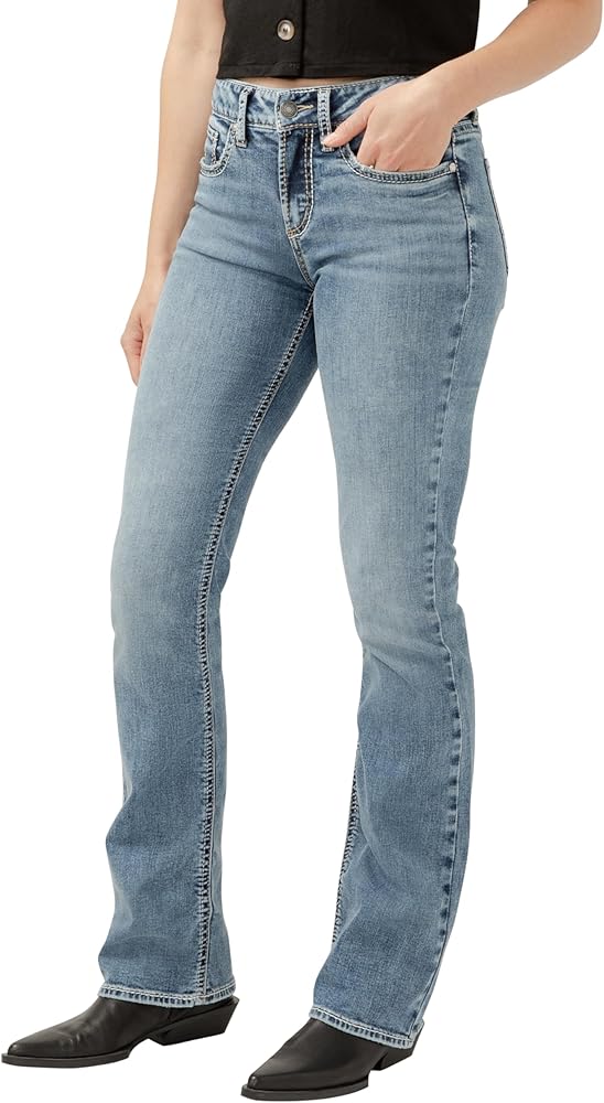 Silver Jeans Co. Suki Mid Rise Curvy Fit Slim Bootcut Jeans - Suki is the best-selling Silver Jeans Co.™ curvy fit for good reason. Designed to enhance curves, this pair creates a flattering silhouette with ease in the hip and thigh to hug every angle. The classic mid rise is comfortable, and the contoured waistband ensures a zero-gap fit.