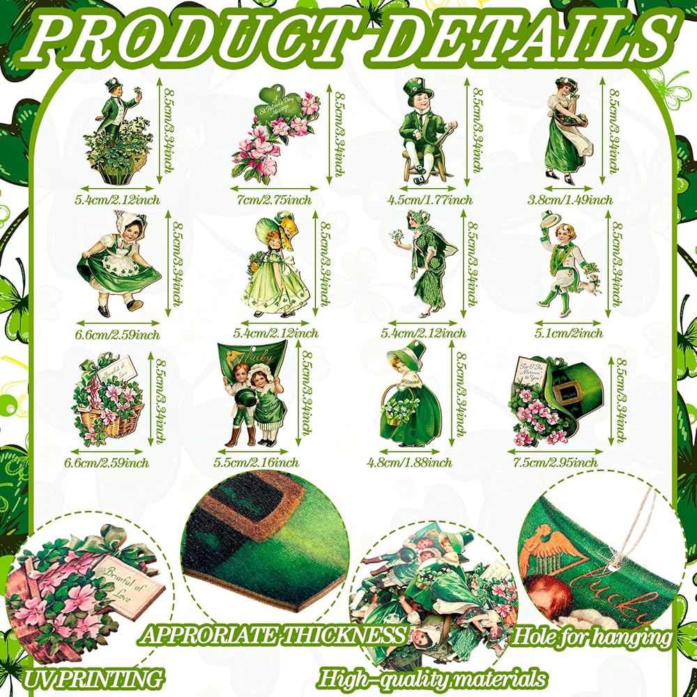 Our Saint Patrick's Day decorations are made of quality wood materials, lightweight and strong, clear and vivid prints on one side, easy to hang and use.