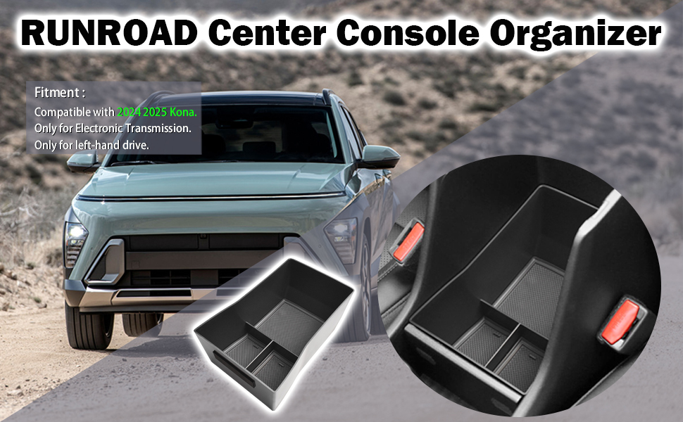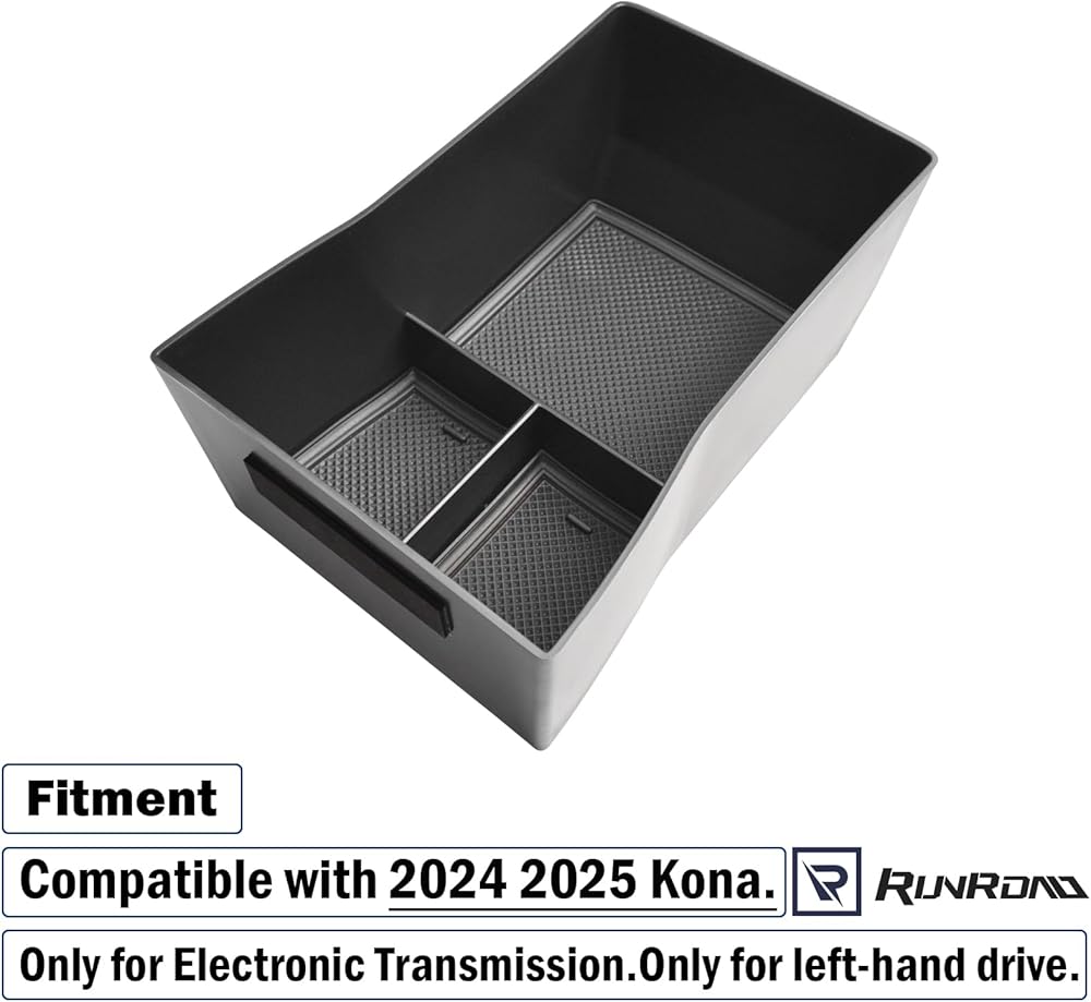 صينية تنظيم وحدة التحكم المركزية متوافقة مع ملحقات Hyundai Kona 2024 2025، صندوق تخزين مسند الذراع الداخلي لعلبة وحدة التحكم الوسطى Kona (ناقل الحركة الإلكتروني فقط)