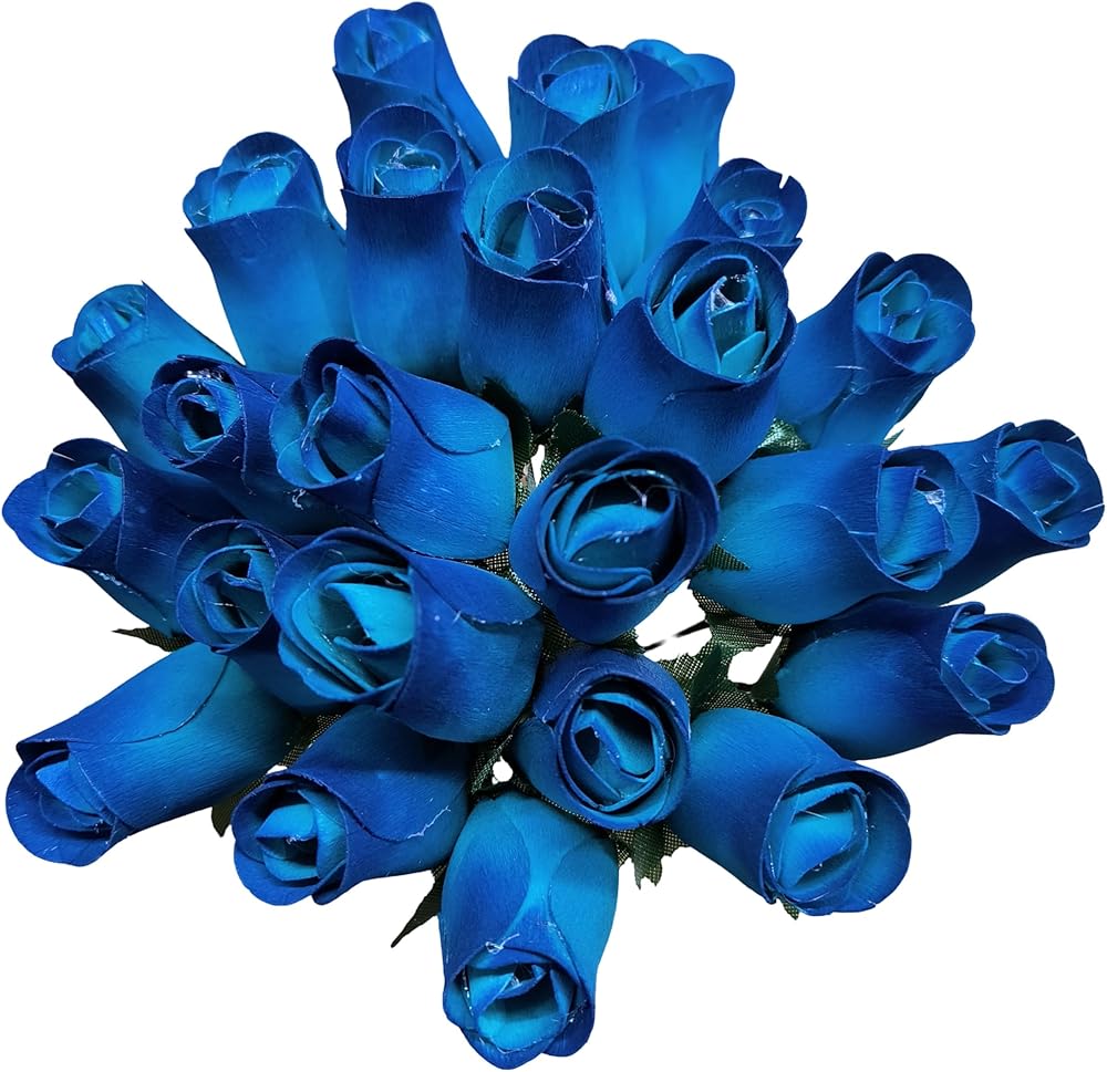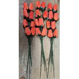 - 2 دستة (24) وردة خشبية حمراء واقعية جميلة مع سيقان سلكية خضراء