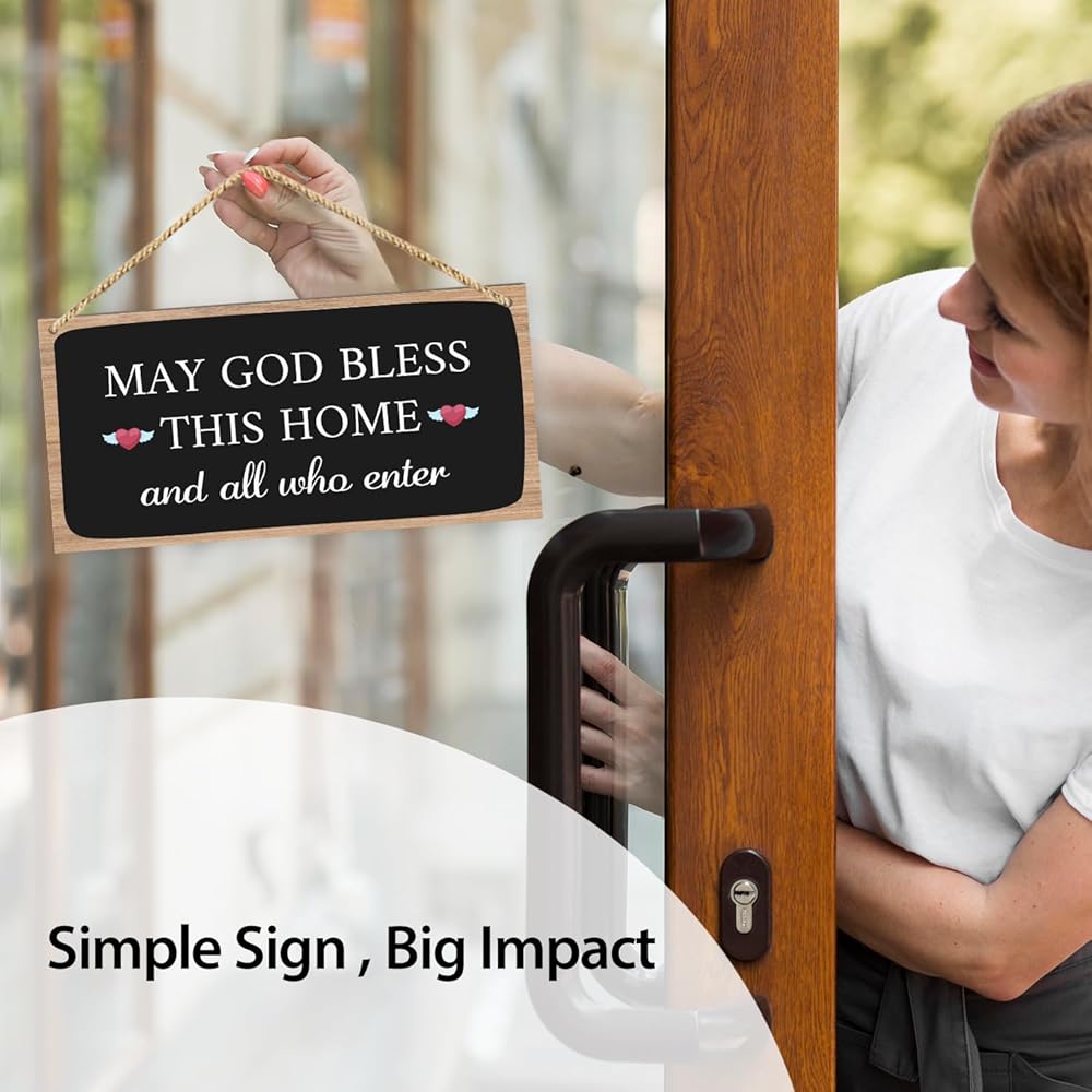 ديكور المنزل المسيحي لوحة خشبية معلقة، بارك هذا ديكور جدار المنزل، علامات مباركة لديكور المنزل هدايا الدين للنساء والرجال علامة خشبية لغرفة المعيشة وغرفة النوم والمطبخ هدية الترحيب بالمنزل-21