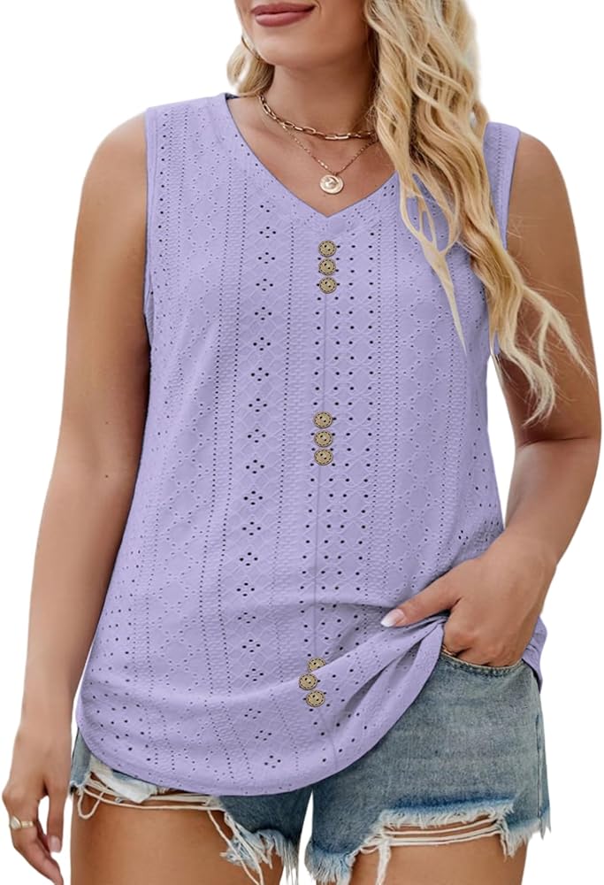 - قمصان بدون أكمام للسيدات بمقاس كبير مصنوعة من نسيج ناعم ومريح وصديق للبشرة