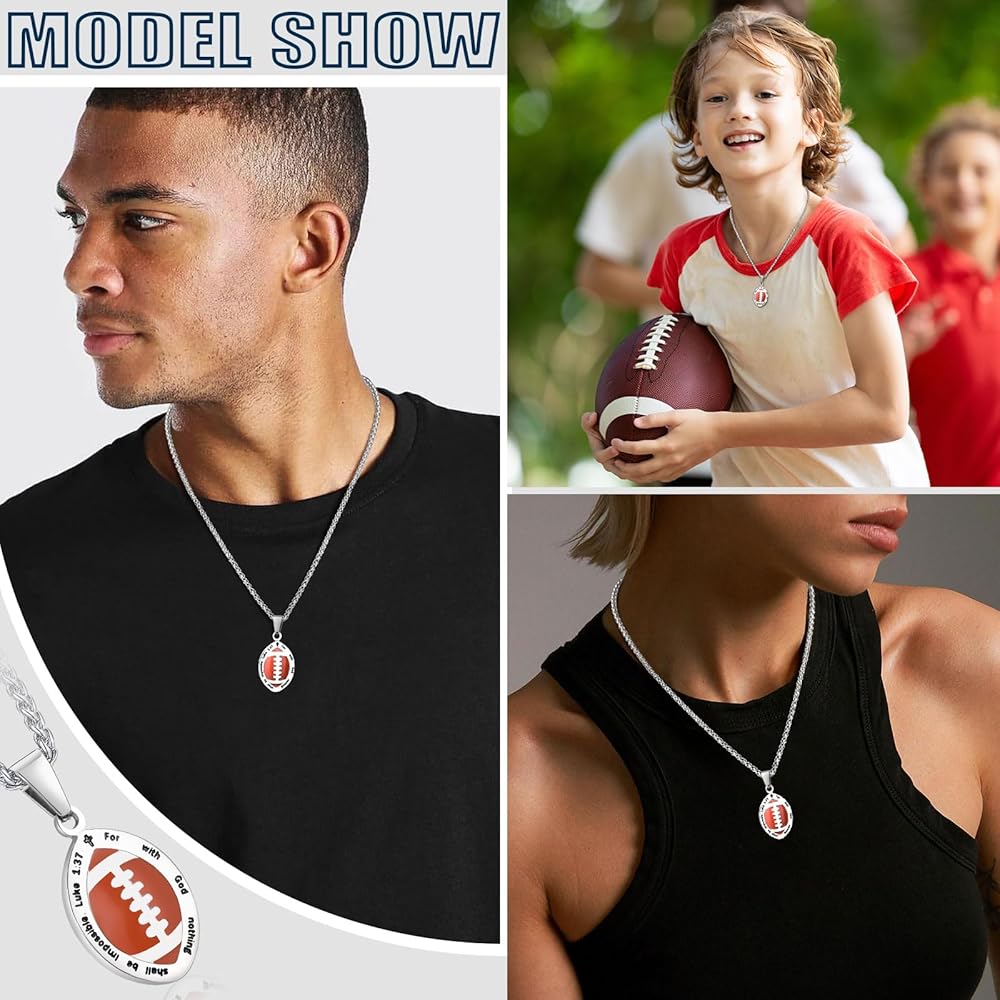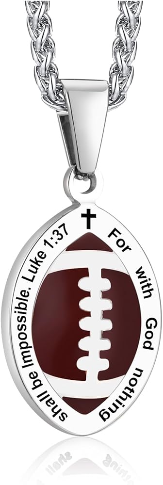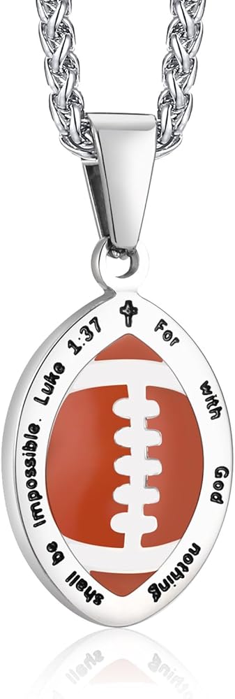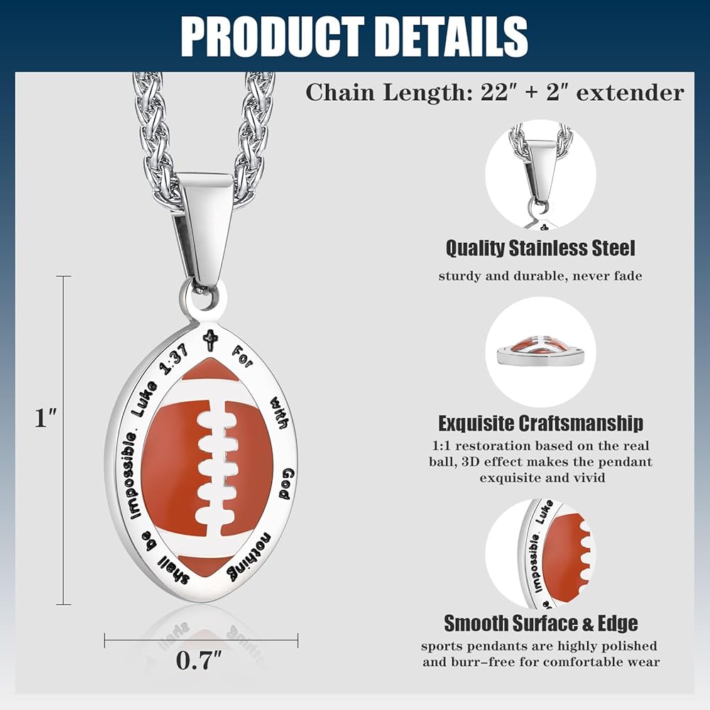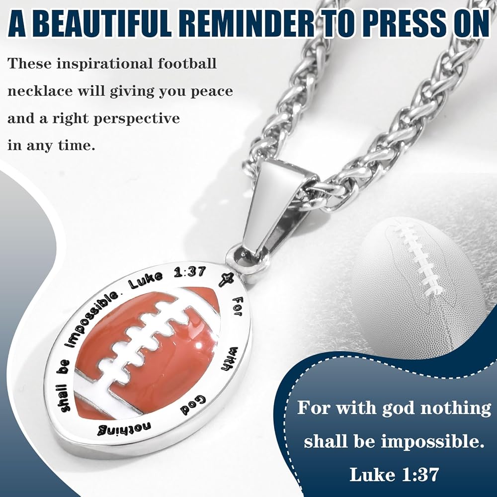 【قلادة آية من الكتاب المقدس لكرة القدم】قلادة رياضية مذهلة تتميز بقلادة كرة قدم مفعمة بالحيوية، تجمع بين آية الكتاب المقدس الملهمة من لوقا 1:37 لأنه لا يوجد شيء مستحيل مع الله. نقش عميق لآية الكتاب المقدس للحصول على مظهر جريء وملفت للنظر. ستمنحك قلادة الكتاب المقدس المسيحية الملهمة السلام والمنظور الصحيح في أي وقت. تذكير جميل للضغط عليه، وهدية مثالية للأصدقاء أو العائلات أو أي شخص يحتاج فقط إلى القليل من الإلهام.