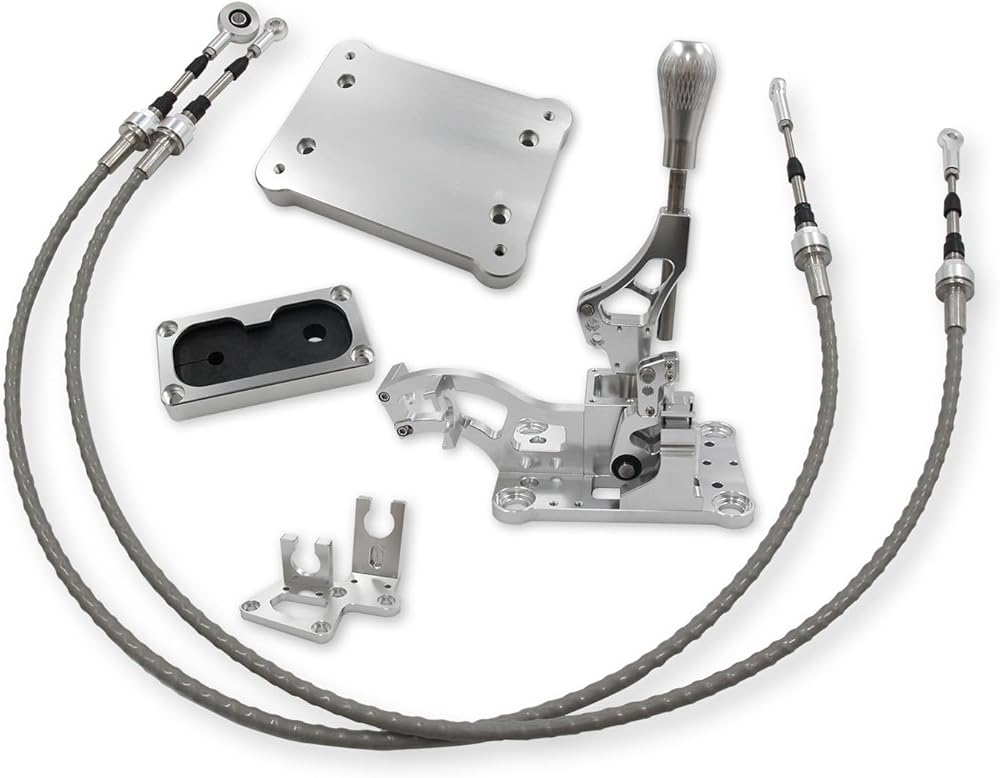 More Flexible - Cable mounting ends are made of high strength steel and were designed with a threaded section to eliminate the need for the OEM cable clips. Gear selector with a billet rod end, with added a spherical delrin insert to allow proper movement. A simpler fixing of the elbow position to change the height, meets or exceeds original equipment specifications.