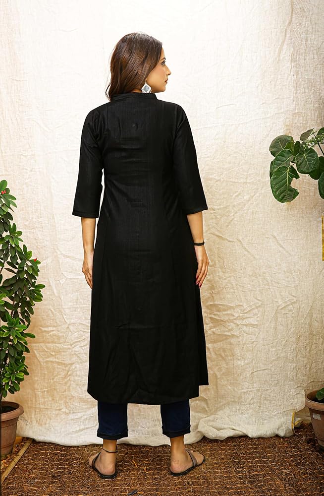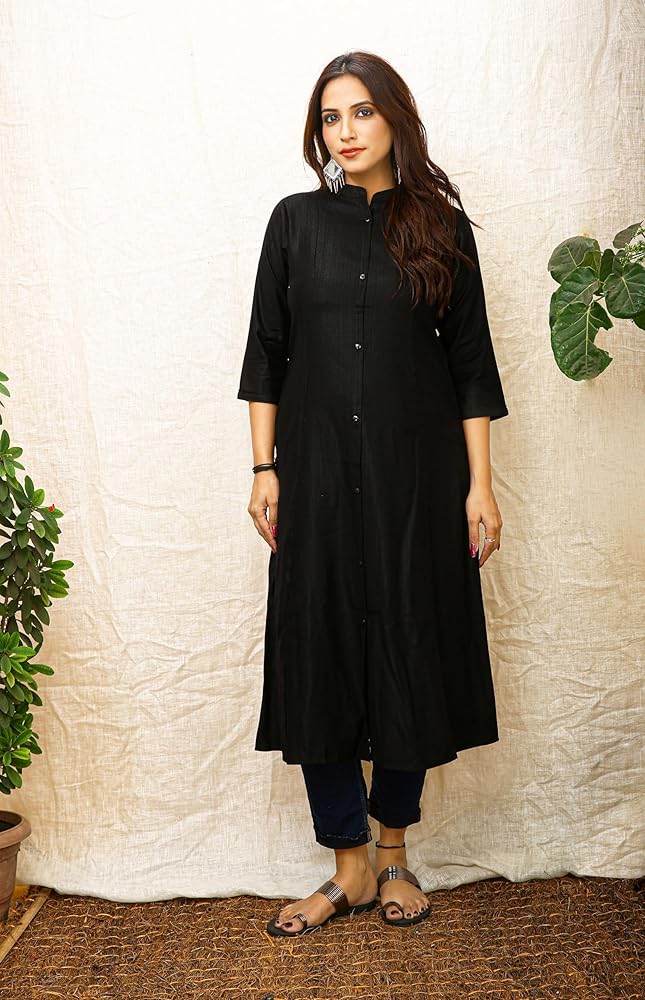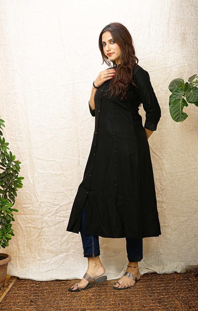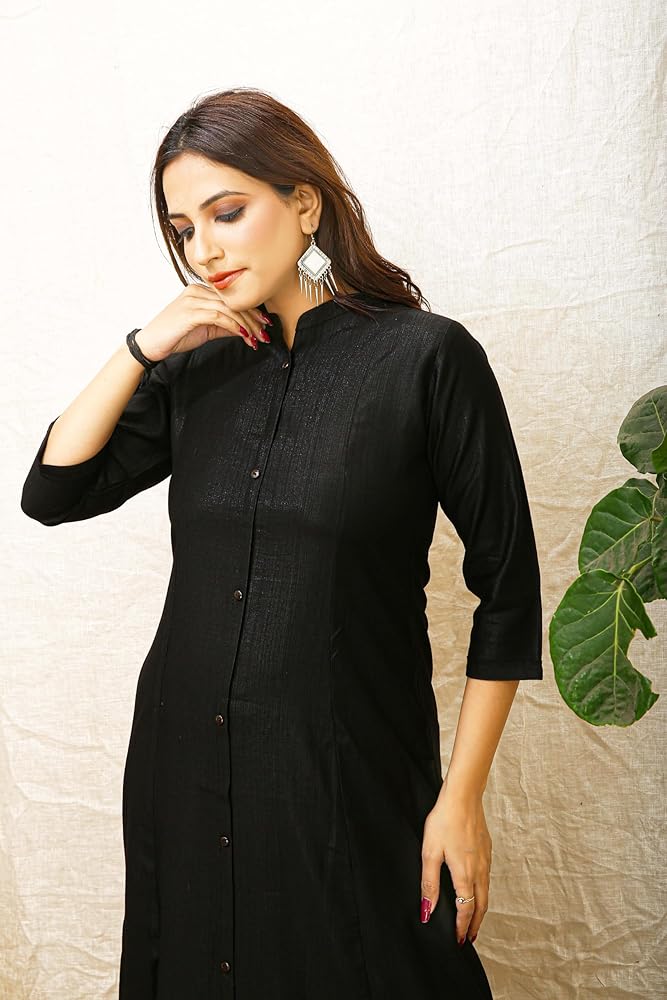 **Contains 1-Piece Tunic: This product includes a single tunic. Bottoms are not included… **Length: Top - 46 inches; Sleeves - 3/4 length… **Fabric & Design: Crafted from premium slub weaving rayon fabric, this long tunic features a stylish Henley neck with a button-down pattern. Please note, only the first button is functional, while the rest are decorative. ...**Style & Utility: The tunic is designed in an A-line flared pattern with a front slit and no side cuts. It also includes a convenient side pocket. .. **Versatile Wear: This rayon crepe tunic is perfect for evening wear, formal, shopping trips, and holidays. Pair it with Palazzo Pants, jeans or jeggings for a complete look...